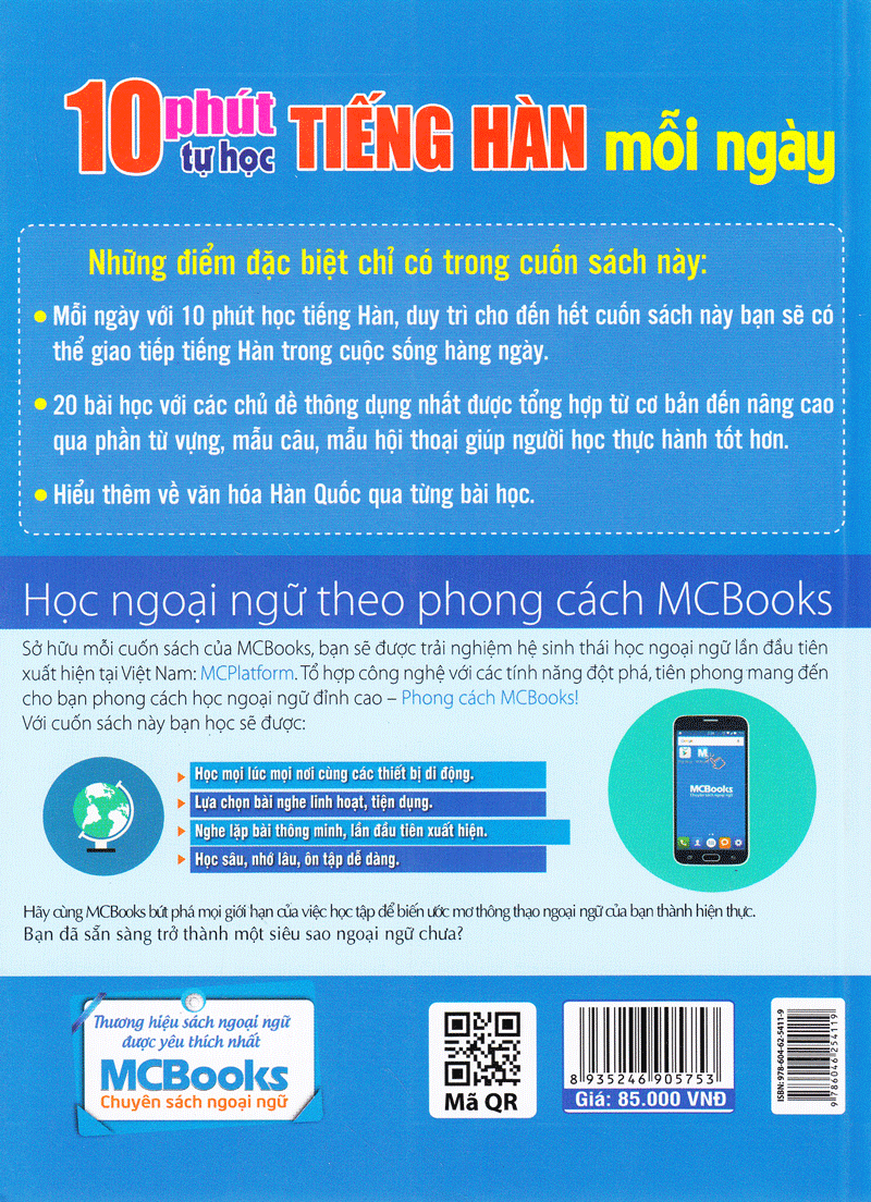 Sách 10 Phút Tự Học Tiếng Hàn Mỗi Ngày (Học kèm APP MCBOOKS – Trải nghiệm tuyệt vời với hệ sinh thái MCPlatform) tặng kèm bookmark pdf ebook doc epub word wattpad prc đọc online Tác giả: The Changmi.