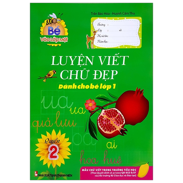 Sách Bé Vào Lớp 1 – Luyện Viết Chữ Đẹp – Quyển 2 Tác giả: Trần Bảo Hòa, Huỳnh Cẩm Thu, Công ty phát hành NXB Thanh Niên.