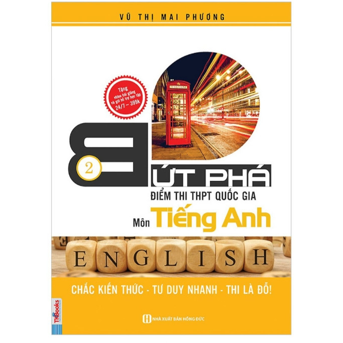Bứt Phá Điểm Thi THPT Quốc Gia Môn Tiếng Anh 2 Bứt phá điểm thi THPT Quốc gia môn Tiếng Anh – Bí quyết giúp các em học sinh lớp 12 đạt điểm cao trong kỳ thi. Kỳ thi THPT Quốc gia là một kỳ thi quan trọng, đánh dấu một bước ngoặt to lớn của cuộc đời các em học sinh. Toán, Ngữ văn và tiếng Anh là 3 môn học bắt buộc khiến nhiều em phải “đau đầu” trước lượng kiến thức rộng lớn. Kỳ thi đang tới rất gần vậy mà giờ đây nhiều em vẫn còn đang hoang mang khi không biết ôn tập từ đâu, ôn tập như thế nào và tài liệu nào phù hợp với trình độ các em, bám sát và cập nhật được những xu hướng ra đề mới nhất. Qua tập 1 các em đã được ôn tập về Ngữ pháp – Từ vựng; Giao tiếp xã hội; Tìm lỗi sai và Biến đổi câu. Tập 2 sẽ mang tới cho các em những nội dung kiến thức bổ ích thông qua 4 chuyên đề. Những khó khăn mà các em học sinh thường gặp Lượng từ vựng ít Với những dạng bài về trắc nghiệm điền từ, dạng bài về từ đồng nghĩa, từ trái nghĩa yêu cầu các em phải có lượng kiến thức về từ vựng tương đối tốt. Tuy nhiên các em lại đang yếu phần này. Nhiều em học trước quên sau, đến những câu hỏi liên quan đến từ vựng hầu như đều khoanh mò. Trong đề thi thường có các dạng bài tập dễ mất điểm Phần trọng âm/ngữ âm chỉ có 5 câu trong đề thi nhưng lại là phần khiến nhiều em hay bị mất điểm nhất. Bởi các em có ôn tập kỹ đến đâu nhưng khi đi thi vẫn cảm thấy lúng túng, phân vân khi câu hỏi xuất hiện nhiều từ vựng có hình thức mới mẻ. Học sinh vẫn còn ôn tập phần này rất máy móc, các em dùng từ điển tra từng từ, ghi nhớ và học thuộc lòng mà không tự rút ra được những quy tắc chung. Không có phương pháp làm bài trắc nghiệm tiếng Anh hiệu quả Trong 50 câu trắc nghiệm tiếng Anh có đến phân nửa các câu hỏi thuộc dạng đọc hiểu. Các sĩ tử thường mất khá nhiều thời gian ở phần này. Đa số các em đều cặm cụi đọc và dịch nghĩa nhưng vẫn không tìm được đáp áp đúng. Trong đề thi còn có nhiều câu hỏi bẫy, đánh đố học sinh. Để giải quyết tốt đòi hỏi các em cần có phương pháp làm bài nhanh, hiệu quả và phải bỏ túi một số bí kíp nhất định. Bứt phá điểm thi THPT Quốc gia môn Tiếng Anh tập 2 Hệ thống kiến thức qua 4 chuyên đề Bứt phá điểm thi THPT Quốc gia môn Tiếng Anh của tác giả Vũ Thị Mai Phương gồm có 2 tập. Tập 2 có 4 phần nội dung kiến thức: – Phần 1: Ngữ âm – Trọng âm Trong đề thi THPT Quốc gia phần này có 4 câu hỏi gồm 2 câu hỏi về trọng âm và 2 câu hỏi về ngữ âm. Trong phần 1 các em sẽ được học hỏi những trọng tâm lý thuyết về ngữ âm và trọng âm, được làm các bài tập sát với đề thi thật và luyện giải những câu hỏi đã xuất hiện trong đề thi 2017. – Phần 2: Cách làm các dạng câu hỏi trong bài điền từ vào các đoạn văn Qua phần 2 học sinh có thể phân loại các câu hỏi trong bài điền từ vào đoạn văn thành các dạng chính sau: câu hỏi ngữ pháp; câu hỏi từ vựng; câu hỏi liên từ; câu hỏi giới từ và cụm động từ. – Phần 3: Chiến lược làm bài đọc hiểu Bài đọc hiểu luôn làm học sinh mất nhiều thời gian nhưng qua phần này các em sẽ học được những kỹ năng, những chiến lược làm bài hiệu quả. Học sinh sẽ không cần đọc, dịch nghĩa hết tất cả mà vẫn có thể chọn được đáp án đúng. – Phần 4: Từ đồng nghĩa, trái nghĩa Trong dạng bài tập từ đồng nghĩa, trái nghĩa, học sinh phải lựa chọn đáp án gần nghĩa (closest in meaning) hoặc trái nghĩa (opposite in meaning) với từ cho sẵn. Phần 4 sẽ cung cấp cho các em những cách đoán nghĩa của từ vựng, từ đó các em có thể giải quyết nhanh những câu hỏi này. Bí quyết giải nhanh trắc nghiệm tiếng Anh – Tăng tốc độ làm bài Tài liệu cung cấp cho học sinh lớp 12 các bí quyết giải nhanh các dạng bài Trọng âm – Ngữ âm, điền từ, đọc hiểu, từ đồng nghĩa – trái nghĩa. Nhờ đó các em sẽ không còn phải lo lắng khi làm những dạng bài này. Bí quyết giải nhanh còn giúp các em tăng tốc độ làm bài lên đến 30%, nhờ đó các em sẽ dành được nhiều thời gian để làm những câu khó cũng như rà soát lại bài làm. Tổng hợp các bẫy thường có trong đề thi môn Anh Sách còn tổng hợp tất cả các bẫy chắc chắn sẽ gặp trong đề thi và những cách nhận biết và vượt qua những câu hỏi một cách dễ dàng. Chắc chắn rằng thông qua cuốn sách các em sẽ yêu thích môn tiếng Anh và dễ dàng chinh phục được từng dạng bài trong đề thi. Hỗ trợ học tập xuyên suốt quá trình các em ôn thi THPT Quốc gia Sở hữu cuốn sách các em còn có cơ hội nhận được: – Gói hỗ trợ luyện thi 24/7 trị giá 399.000 đồng bao gồm: bộ video tương tác giải đề cực chất của cô Mai Phương; giải đáp thắc mắc trực tuyến 24/7 trên group kín – Cơ hội kết nối trực tiếp với tác giả Vũ Thị Mai Phương Cuốn sách cung cấp cho các em đầy đủ những trọng t