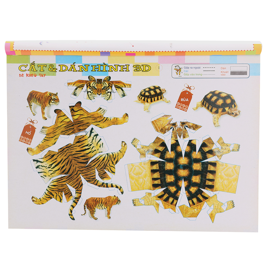 Cắt Dán Hình 3D – Bé Khéo Tay – Bộ Sáng Tạo “Cắt và dán hình 3D – Bé khéo tay” bao gồm 6 cuốn, là bộ sách thực hành thủ công cắt dán dành cho các em bé ở lứa tuổi mẫu giáo, tiểu học. Với những mẫu hình có trong bộ sách, bé chỉ việc dùng kéo cắt theo đường viền định sẵn, sau đó gấp theo hướng dẫn, rồi lắp ghép và dùng keo dính cố định chúng lại với nhau để tạo nên những hình 3D vô cùng ngộ nghĩnh, đáng yêu, như: tháp Ep-phen, bò tót, khỉ đầu đỏ, sóc, hổ, rùa, gà, vẹt, chim cánh cụt, voi ma mú Đó sẽ là những món đồ thật tuyệt để bé trang trí góc học tập của mình, hoặc làm quà tặng cho bạn bè và những người thân yêu trong gia đình. Bắt tay vào thực hiện những tác phẩm bằng giấy này là các bé đã bước vào thế giới thủ công sinh động và đầy ắp niềm vui. Qua đó, bé không những được vui chơi thỏa thích mà còn được phát huy tính sáng tạo, tăng cường khả năng tư duy linh hoạt, rèn luyện đôi bàn tay khéo léo và bồi dưỡng hơn nữa tính kiên trì. Thật hữu ích phải không nào các bé!