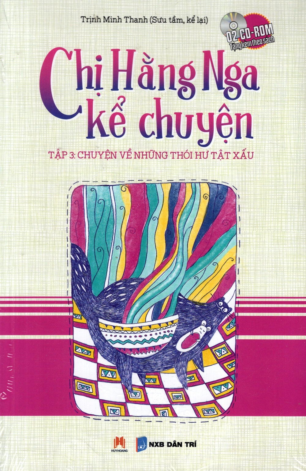 Chị Hằng Nga Kể Chuyện – Tập 3 Trong cuốn sách Chị Hằng Nga Kể Chuyện – Tập 3, chị Hằng Nga sẽ kể cho các em nghe những câu chuyện về thói kiêu căng, đỏng đảnh của nàng công chúa vợ Vua Quạ; thói mưu mô, quỷ quyệt của Chó Rừng; thói tham lam của chú mèo vì niêu mỡ mà bỏ qua cả tình cảm kết nghĩa với chú chuột tội nghiệp,… Các em sẽ thấy rằng, con người mà mắc những thói hư tật xấu thì không tốt một chút nào. Qua những câu chuyện trong sách mà chị Hằng Nga kể, các em hãy tránh xa những thói hư tật xấu ấy nhé! Sách có kèm đĩa CD giúp cho các bé có thể nghe kê chuyện những lúc không có thời gian đọc truyện.