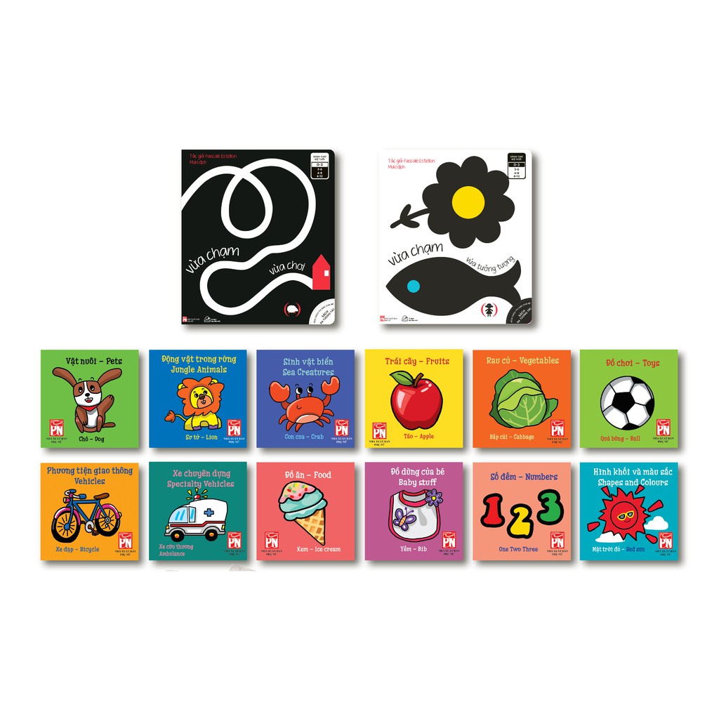 Giới thiệu sách Combo Kích thích thị giác: 02 cuốn Boardbook Vừa chạm vừa chơi, vừa chạm vừa tưởng tượng + 12 cuốn sách vải kích thích thị giác Bộ 2 cuốn Vừa chạm vừa chơi/ Vừa chạm vừa tưởng tượng. Hai cuốn sách vừa chơi, vừa trò chuyện cùng bé, vừa giúp bé khám phá bao điều kỳ lạ về hình khối, màu sắc, và cảm nhận các sự vật một cách rõ ràng, chân thực nhất. Kích thích sự phát triển tối ưu của các cơ quan thị giác, xúc giác, tăng khả năng phán đoán và tưởng tượng của bé. Cuốn sách có thể trải dài ra để đọc, có thể dựng thẳng đứng để quan sát các chi tiết, hoặc gập mạnh từng trang để cảm nhận âm thanh, tạo sự gần gũi, vui vẻ và không gây nhàm chán cho bé khi xem sách. Bộ 12 cuốn sách vải song ngữ Anh – Việt: Bộ sách không chỉ khiến các bố mẹ ưng ý khi lựa sách cho con mà các bé cũng sẽ vô cùng thích thú khi tương tác cùng bộ sách đa năng và đáng yêu này. Bộ sách đa dạng nhiều chủ đề về các sự vật trong cuộc sống, mẹ có thể tận dụng bộ sách để giới thiệu cho bé về tên gọi và nhận biết các sự vật quanh bé như: đồ ăn, đồ dùng của bé, đồ chơi, rau củ, phương tiện giao thông… Bố/ mẹ có thể yên tâm cho bé tự xem sách vì sách chất liệu vải nhẹ, đã khử trùng, không gây hại cho bé, có thể tha hồ cầm, nắm, vò hay gặm sách mà không lo sách bị hư hại. Bộ 12 cuốn sách giúp bé nhận biết và phân biệt màu sắc, làm nhanh quá trình hoàn thiện thị giác. Màng pp tạo ra âm thanh sột soạt, vui tai, kích thích thính giác bé phát triển vượt trội. Hình minh hoạ sinh động, đáng yêu cho bé cảm giác gần gũi khi xem sách. Mẹ có thể cho bé làm quen và học ngoại ngữ từ bộ sách bởi các sự vật được gọi tên bằng cả tiếng Việt và tiếng Anh. Bộ 12 cuốn sách giúp bé nhận biết và phân biệt màu sắc, làm nhanh quá trình hoàn thiện thị giác. Màng pp tạo ra âm thanh sột soạt, vui tai, kích thích thính giác bé phát triển vượt trội. Hình minh hoạ sinh động, đáng yêu cho bé cảm giác gần gũi khi xem sách. Mẹ có thể cho bé làm quen và học ngoại ngữ từ bộ sách bởi các sự vật được gọi tên bằng cả tiếng Việt và tiếng Anh. Công ty phát hành MUKI Tác giả : Nhiều tác giả NXB : NXB Phụ Nữ Kích thước 24 x 20 cm Năm XB 2019 Số trang 50 +