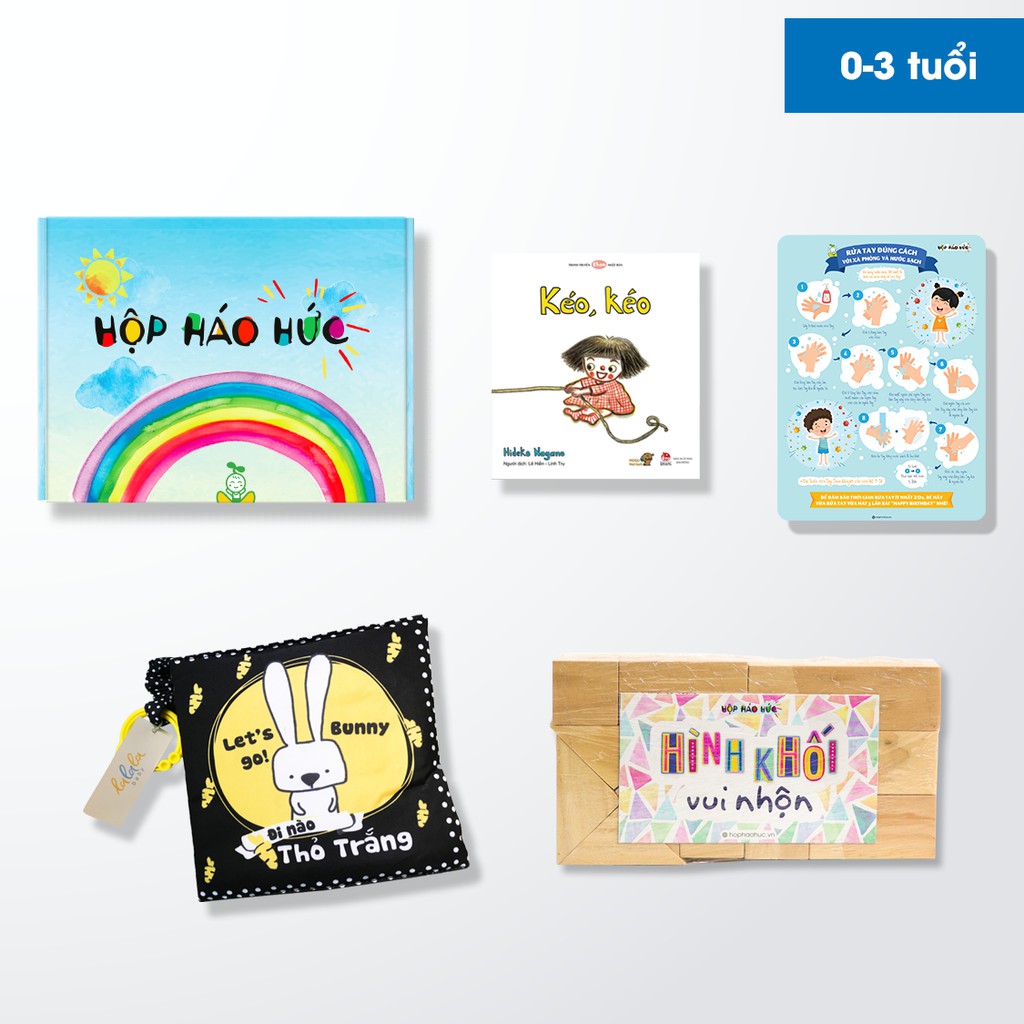 Set đồ chơi KÉO KÉO hoặc BÍ NGÔ KHÔNG NGỦ ĐƯỢC ( để ngẫu nhiên 1 trong 2 cuốn sách) Công ty phát hành: More production Tác giả: Hideko Nagano Nhà xuất bản: Nhà Xuất Bản Kim Đồng Năm xuất bản: 2019 Số trang: 24 Truyện có nhiều nhân vật, chi tiết, đồ vật,… được vẽ ngộ nghĩnh.Cuốn truyện thú vị kể về sự khám phá thế giới xung quanh của bé gái nọ. Trong nhà mình thôi cũng có bao điều để những đứa trẻ có thể làm quen, học tập và khám phá. Các bố mẹ hãy cùng em bé nhà mình tìm hiểu thế giới rộng lớn, bắt đầu từ trong căn nhà của gia đình mình nhé. ĐI NÀO THỎ TRẮNG Tác giả: Momo home Khuôn Khổ: 18x18cm Số trang: 11 Định dạng: Sách vải Phát hành: 2020 GIỚI THIỆU TÁC PHẨM Cuốn sách vải Đi nào Thỏ trắng: Với màu sắc tương phản trắng đen phù hợp với bé ngay từ khi mới sinh, sách kể về chuyến hành trình đi tìm hiểu về các bạn động vật có cùng màu sắc đen trắng giống mình. Sau chuyến hành trình, bạn thỏ lại quay trở về vòng tay của mẹ, điều này giáo dục mạnh mẽ đến việc dù đi đâu thì Nhà cũng vẫn là nơi cuối cùng ta trở về. ”