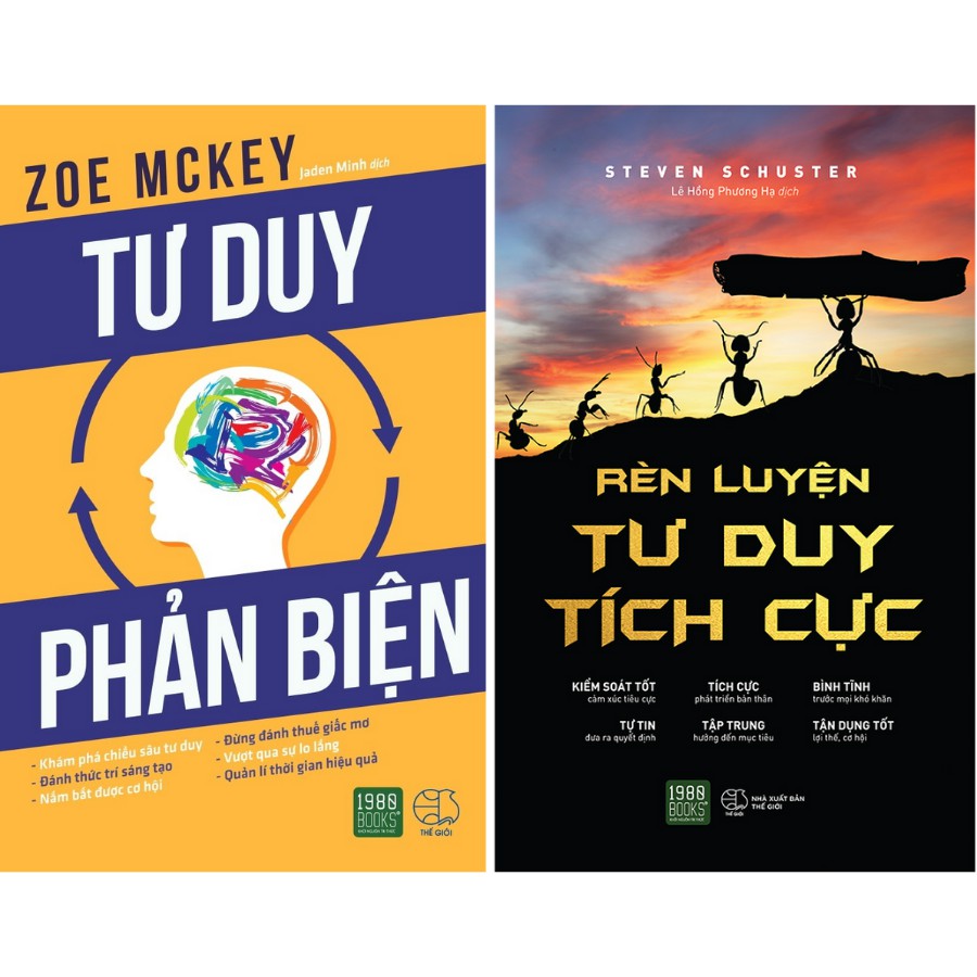 1. Tư Duy Phản Biện Công ty phát hành: 1980 Books Nhà xuất bản: NXB Thế Giới Tác giả: Zoe McKey Năm xuất bản: 2018 Kích thước: 13 x 20 Loại bìa: Bìa mềm Tư duy phản biện là chìa khóa để bạn thoát khỏi những lối mòn trong suy nghĩ, giúp bạn giải quyết các vấn đề khó khăn một cách sáng tạo và hiệu quả hơn. Cuốn sách “Tư duy phản biện” được viết bởi chuyên gia đào tạo Zoe McKey sẽ giúp bạn khai phá được sức mạnh trí óc của mình. Tác phẩm chứa đựng những bí quyết và chiến lược của các cá nhân thành công nhất, giúp người đọc có thể: – Khám phá chiều sâu tư duy – Đánh thức trí sáng tạo – Nắm bắt được cơ hội – Không ngại mơ ước – Vượt qua sự lo lắng – Quản lí thời gian hiệu quả Đọc xong tác phẩm, trực giác của bạn sẽ được mài sắc một cách rõ rệt, nhờ vậy khả năng đánh giá và đưa ra quyết định cũng được cải thiện, giúp bạn tự tin hơn trong mọi hành động. Nếu đủ động lực để thực hành các phương pháp trong “Tư duy phản biện”, bạn sẽ học được một lối tư duy có định hướng, tập trung, kỉ luật và tự chủ. Bạn sẽ biết cách phân tích các tình huống từ nhiều góc độ khác nhau, không vội vàng đưa ra những kết luận sai lầm và chủ quan, có cái nhìn đúng đắn hơn với các hiện tượng trong cuộc sống, và không còn phải hối tiếc với các quyết định và hành xử của mình. 2. Rèn Luyện Tư Duy Tích Cực Công ty phát hành: 1980 Books Tác giả: Steven Schuster Nhà xuất bản: NXB Thế Giới Năm xuất bản: 2020 Số trang: 204 Bản chất con người vốn là hay suy nghĩ. Chính khả năng đó khiến chúng ta khác biệt với các giống loài khác. Chúng ta nhận thức được việc mình suy nghĩ. Thói quen nhận thức ngày càng phát triển hơn khi chúng ta lớn lên. Chúng ta học hỏi từ cha mẹ. Sau đó đi học, lên đại học, tìm được công ăn việc làm, đọc thật nhiều sách, xem cả tá phim ảnh và kết nối với người khác. Mỗi một hoạt động này vô tình ảnh hưởng đến cách suy nghĩ của chúng ta. Kinh nghiệm nhận thức định hình thế giới quan của mỗi người. Mọi thứ mà cá nhân chúng ta trải nghiệm sẽ đi qua bộ lọc của bản thân và được hợp thức hóa. Rất thực tế. Còn thực tế hơn cả những thứ chúng ta chưa từng trải qua. Cho dù những điều chúng ta tin có thể không phải lúc nào cũng đúng. Có một nghịch lý rất quen thuộc là chúng ta thường xuyên được khuyên rằng hãy suy nghĩ kỹ càng trước khi hành động. Nhưng càng cố đào sâu suy nghĩ, càng cân nhắc cẩn thận, chúng ta càng dễ lún sâu vào những cái bẫy của tâm trí. Những cái bẫy đó là cảm xúc lo lắng, bồn chồn, là các luồng suy nghĩ rối rắm, lộn xộn. Chúng ta bế tắc và không thể thoát ra khỏi các lối mòn, để cuối cùng lại đưa ra những quyết định và hành động cực kỳ thiếu sáng suốt. Tác giả Steven Schuster hiểu rằng, thay vì tập trung vào những suy nghĩ vẩn vơ không bao giờ chấm dứt, mỗi chúng ta nên chú tâm vào nguồn gốc gây ra nỗi sợ để chấp nhận và khắc phục chúng. Ông viết “Rèn luyện tư duy tích cực” để trợ giúp độc giả, giúp người đọc trả lời hai câu hỏi: Thứ nhất, vì sao tâm trí bạn lại thường xuyên chống lại bạn, hay nói cách khác, vì sao bạn thường tự suy diễn ra những ý nghĩ tiêu cực và phụ thuộc vào nó? Thứ hai, làm thế nào để phá bỏ lối mòn tư duy, cải thiện kỹ năng tư duy phê bình và phát triển khả năng phán đoán tốt hơn trong cuộc chiến chống lại những suy nghĩ tự phá hoại? “Rèn luyện tư duy tích cực”bao gồm 9 chương sách, phân tích 9 lối mòn tư duy thường gặp phải của đa số mọi người. Bạn nhất định sẽ bất ngờ khi bắt gặp chính hình ảnh của bản thân trong lối dẫn dắt và giải quyết vấn đề của Schuster, và nhanh chóng tìm thấy lời giải cho các vấn đề của mình. Có lẽ “Rèn luyện tư duy tích cực”không phải là cuốn sách có thể thay đổi cuộc đời của bạn chỉ sau một đêm. Nhưng tác phẩm này đủ khả năng để cho bạn thấy cách cải thiện các mối quan hệ cá nhân, giải phóng bạn khỏi sợ hãi, và cho bạn một cách tiếp cận cuộc sống đa chiều, nhiều màu sắc.