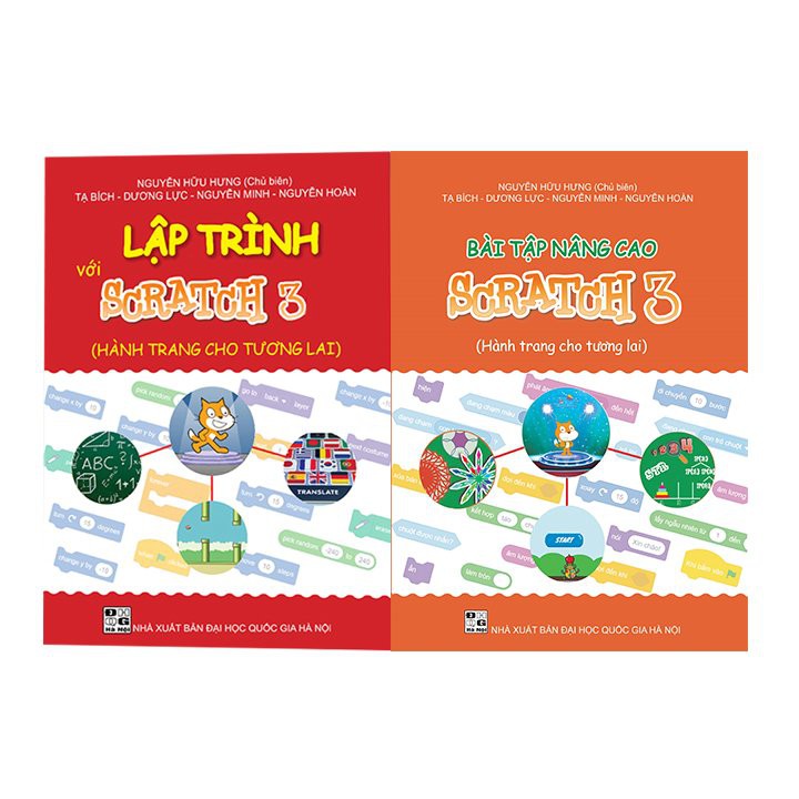Combo 2 sách Lập trình với Scratch 3 và Bài tập Nâng cao Scratch 3 gồm 1. Sách Lập trình với Scratch 3 “Lập trình với Scratch 3” là cuốn sách phiên bản mới của “Lập trình với Scratch 2.0” do VIETSTEM biên soạn. Sách phù hợp: – Học sinh từ 6 – 18 tuổi làm quen và học các kiến thức cơ bản về lập trình Scratch với phiên bản phần mềm Scratch 3. – Giáo viên tin học hoặc bạn đọc bắt đầu làm quen với môn lập trình kéo thả – Các đơn vị, tổ chức giáo dục làm tài liệu giảng dạy cho học sinh. Cuốn sách viết theo phong cách Thực hành – Trải nghiệm – Trực quan vì vậy là cuốn sách lý tưởng cho các bạn học sinh tự học và là cuốn tài liệu hỗ trợ đắc lực cho các lớp học, câu lạc bộ học lập trình với Scratch 3 *Nội dung cuốn sách “Lập trình với Scratch 3” Nội dung chính của cuốn sách gồm 5 chương và 3 phần phụ lục Chương 1: Phần mềm Scratch 3 Chương 2: Thiệp sinh nhật Chương 3: Đồng hồ Chương 4: Đường lên đỉnh Olympia Chương 5: Bảo vệ đảo Phụ lục 1: Mô phỏng mạch điện Phụ lục 2: Ứng dụng dịch ngôn ngữ Phụ lục 3: Hàm, thủ tục trong lập trình * Nhà xuất bản: Đại Học Quốc Gia Hà Nội * Tác giả: Nguyễn Hữu Hưng (chủ biên) * Ngày xuất bản: 2020 * Số trang: 202 trang 2. Sách Bài tập Nâng Cao Scratch 3 Cuốn sách cung cấp tới bạn đọc những bài tập nâng cao với Scratch 3 nhằm củng cố kiến thức, kĩ năng lập trình và ứng dụng. Qua đó nâng cao khả năng đọc hiểu, phân tích yêu cầu, tập hợp phương án để giải quyết vấn đề. Nội dung cuốn sách: Cuốn sách gồm 05 chương, mỗi chương là một dạng bài tập khác nhau về ngôn ngữ lập trình Scratch. Mỗi dạng bài đều có hướng dẫn chi tiết giải một số bài mẫu và thư viện bài tập giúp học sinh tự ôn luyện cụ thể: Chương 1: Dạng bài tập vẽ hình Chương 2: Dạng bài tập số học Chương 3:Dạng bài tập xử lý xâu và chuỗi Chương 4: Dạng bài tập sử dụng thuật toán Chương 5: Dạng bài tập ứng dụng tổng hợp Phụ lục: Thông tin mở rộng gồm 2 nội dung: Giới thiệu một số cuộc thi tại Việt Nam và quốc tế có sử dụng ngôn ngữ lập trình Scratch; Cộng đồng lập trình Scratch và kho mã nguồn mở trên thế giới. Đối tượng sử dụng sách – Học sinh muốn nâng cao kiến thức và kỹ năng lập trình với Scratch. – Giáo viên muốn tham khảo các bài tập Scratch ôn luyện cho học sinh * Nhà xuất bản: Đại Học Quốc Gia Hà Nội * Tác giả: Nguyễn Hữu Hưng (chủ biên) * Ngày xuất bản: 2020 * Số trang: 200 trang * Kiến thức – Sách “Lập trình với Scratch 3” cung cấp cho học sinh kiến thức cơ bản về ngôn ngữ lập trình Scratch và làm chủ lập trình Scratch trong thời gian ngắn nhất. – Bộ 2 sách “Lập trình với Scratch 3 và Bài tập Nâng cao Scratch 3″ cung cấp cho học sinh kiến thức cơ bản và nâng cao về lập trình Scratch. dành
