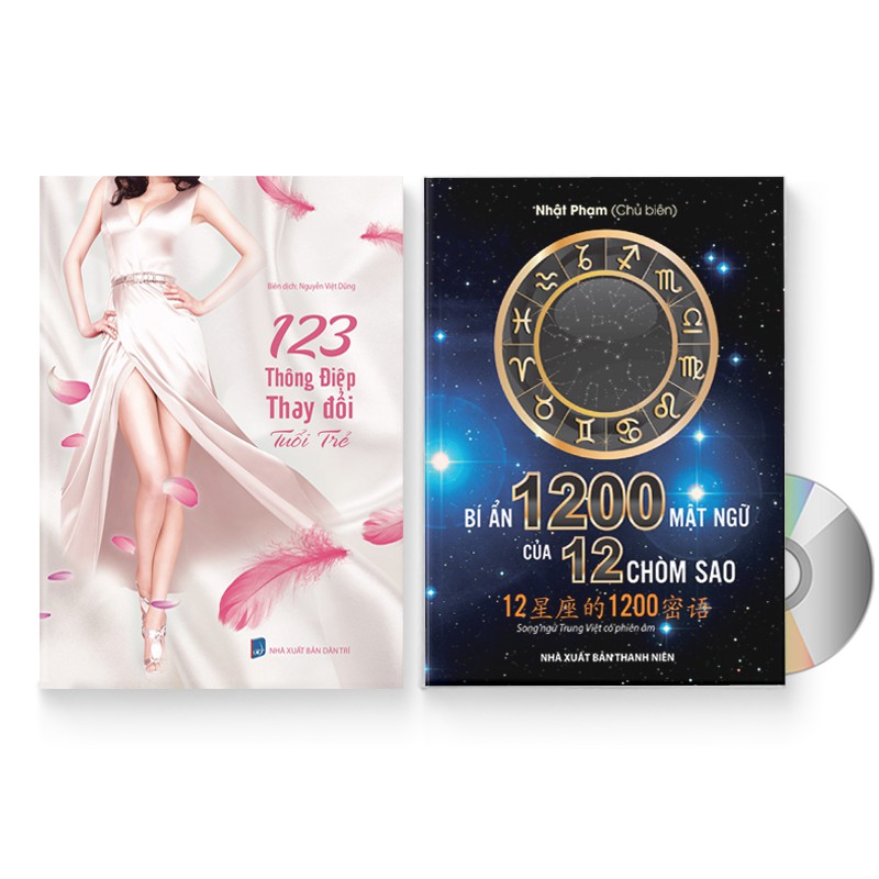 1. Combo 2 sách song ngữ Trung Việt: 1200 Mật ngữ 12 chòm sao + 123 Thông Điệp Thay đổi Tuổi trẻ (có phồn thể) + DVD ebook