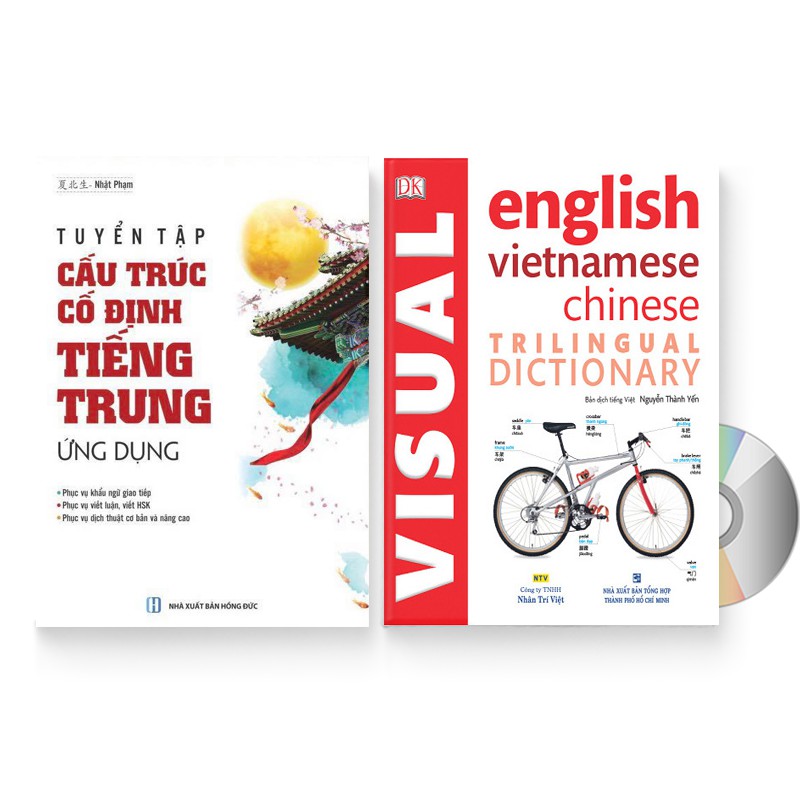 1. Combo 2 Sách – Tuyển tập Cấu trúc cố định tiếng Trung ứng dụng + Từ điển hình ảnh Tam Ngữ Trung Anh Việt + DVD ebook