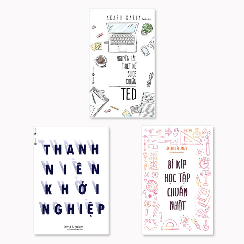 1. Review sách Combo 3 cuốn: Bí Kíp Học Tập Chuẩn Nhật + Thanh Niên Khởi Nghiệp + Nguyên Tắc Thiết Kế Slide Chuẩn Ted