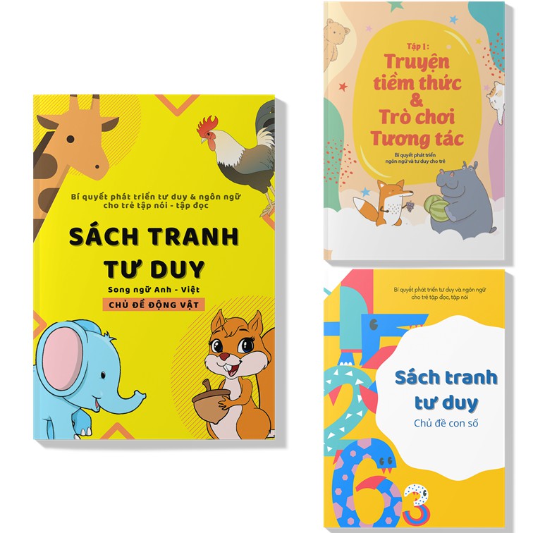 1. Combo 3 cuốn Sách tranh tư duy (Động vật, Con số) + Truyện tiềm thức & trò chơi tương tác ebook