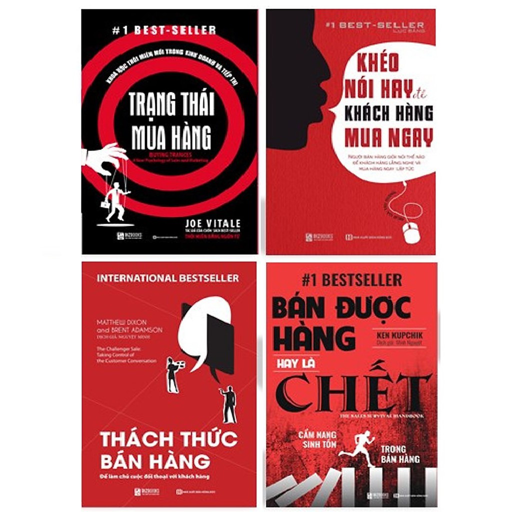 Combo 4 cuốn sách kỹ năng bán hàng tuyệt đỉnh dân sale nhất định phải đọc KZ : Trạng thái mua hàng + Bán được hàng hay là chết + Thách thức bán hàng + Khéo Nói Hay Để Khách Hàng Mua Ngay Combo gồm 4 cuốn .: 1 . Trạng thái mua hàng – Khoa học thôi miên mới trong kinh doanh và tiếp thị Công ty phát hành BIZBOOKS Ngày xuất bản 02-2020 Loại bìa Bìa mềm Số trang 328 Nhà xuất bản Nhà Xuất Bản Hồng Đức Trạng thái mua hàng tiếp tục đào sâu và rèn giũa những kỹ thuật chốt sale thành đỉnh cao, giúp bạn nâng cao tỷ lệ bán hàng thành công của mình lên gần 100%. 2 . Bán được hàng hay là chết – Bán hàng bậc cao Công ty phát hành BIZBOOKS Ngày xuất bản 02-2020 Loại bìa Bìa mềm Số trang 278 Nhà xuất bản Nhà Xuất Bản Hồng Đức Bán hàng là một công việc căng thẳng, đòi hỏi khắt khe, ức chế và cũng cực kỳ thú vị và đáng làm. Không có nghề nào khác có nhiều thăng trầm như vậy, bạn có thể đi từ việc khóc trong phòng tắm đến bật một chai rượu sâm banh một phút tiếp theo, sau đó lại khóc trong xe của bạn trong cùng một ngày. Cuốn sách này dành cho bất cứ ai có đủ can đảm thức dậy vào buổi sáng, uống một lượng cafeine bất thường và sống cuộc sống của một nhân viên bán hàng. 3 . Thách thức bán hàng – Để Làm Chủ Cuộc Đối Thoại Với Khách Hàng Công ty phát hành BIZBOOKS Ngày xuất bản 02-2020 Loại bìa Bìa mềm Số trang 315 Nhà xuất bản Nhà Xuất Bản Hồng Đức Thay vì làm mờ mắt khách hàng bằng những sự thật và tính năng vô tận về công ty và sản phẩm của họ. Người thách thức tiếp cận khách hàng bằng những hiểu biết độc đáo về cách họ có thể tiết kiệm hoặc kiếm tiền cho khách hàng. 4 Khéo Nói Hay Để Khách Hàng Mua Ngay Công ty phát hành BIZBOOKS Ngày xuất bản 02-2020 Loại bìa Bìa mềm Số trang 459 Nhà xuất bản Nhà Xuất Bản Hồng Đức Lời nói chẳng mất tiền mua Lựa lời mà nói cho vừa lòng nhau