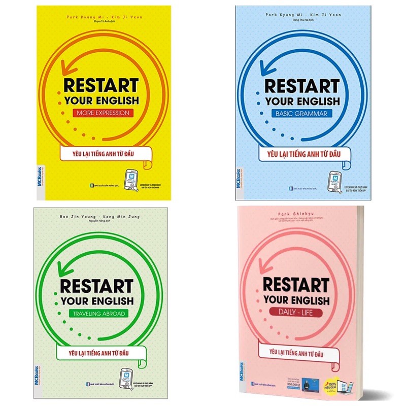 Combo 4 Cuốn Yêu Lại Tiếng Anh Từ Đầu ebook pdf review dowload tác giả Park Shinkyu, Danh Mục Sách Ngoại Ngữ Thương hiệu Park Shinkyu Ngôn ngữ Tiếng Việt Nhập khẩu/ trong nước Trong nước Kho hàng 99 . 1.Restart your English – More Expression Công ty phát hành: MCBooks Tác giả: Nhiều tác giả Nhà xuất bản: NXB Hồng Đức Năm xuất bản: 2020 Số trang: 234 Giới thiệu sách: Tiếng Anh ngày nay không còn là ngôn ngữ của một hay một vài quốc gia. Tiếng Anh ngày nay là một ngôn ngữ toàn cầu! Chúng ta vẫn thường nhìn thấy những biển hiệu tiếng Anh khi đi dạo phố, những đồ dùng hàng ngày với hướng dẫn sử dụng bằng tiếng Anh, những câu nói vu vơ với bạn bè thi thoảng được chêm thêm 1 từ tiếng Anh,… Nhưng để nói tiếng Anh trôi chảy thì không phải điều mà ai cũng làm được. Restart Your English – Cẩm nang cho những người mất gốc cần học tiếng Anh Đây là series sách dành cho những người mất gốc muốn bắt đầu lại quá trình học tiếng Anh. Thông qua các kiến thức tiếng Anh thực tế, người học có thể liên hệ và sử dụng tiếng Anh trong cuộc sống hàng ngày một cách dễ dàng. Đặc biệt, bộ sách được thiết kế với nhiều hình ảnh minh họa sinh động giúp tăng cường hứng thú và khả năng ghi nhớ kiến thức. 2. Restart your English – Traveling Abroad Công ty phát hành: MCBooks Tác giả: Nhiều tác giả Nhà xuất bản: NXB Hồng Đức Năm xuất bản: 2020 Số trang: 262 Giới thiệu sách: Thật tuyệt vời khi chúng ta có thể sắp xếp thời gian và một khoản tiền kha khá để đi du lịch nước ngoài. Tuy nhiên, khi xuất ngoại, chúng ta lại thấy có vô vàn những vấn đề đang tồn tại. Chẳng biết thủ tục xuất nhập cảnh có gì khác không nhỉ? Thủ tục ở sân bay như thế nào? Đặt phòng khách sạn và đi ăn thì phải nói ra sao?… Những điều đó khiến chúng ta cảm thấy vô cùng bỡ ngỡ và ảnh hưởng đến không khí hào hứng của chuyến đi. Vậy khi đi du lịch nước ngoài chúng ta cần phải chuẩn bị những gì? Cũng như giấy tờ tùy thân, việc trang bị trước cho mình những kiến thức và tiếng Anh khi đi du lịch nước ngoài là điều không thể thiếu. 3. Restart Your English – Basic Grammar Công ty phát hành MCBOOKS Tác giả Nhiều tác giả Nhà xuất bản Hồng Đức Năm xuất bản 2020 Số trang 232 Giới thiệu sách Cuốn sách Restart Your English – Basic Grammar giúp bạn: Tổng hợp và phân tích những cấu trúc ngữ pháp tiếng Anh thực sự thông dụng trong cuộc sống Hiểu và nắm chắc hệ thống phiên âm tiếng Anh quốc tế (IPA) sẽ giúp bạn phát âm tiếng Anh dễ dàng và chính xác hơn Bổ sung những từ tiếng Anh quen thuộc trong cuộc sống Luyện nghe và thực hành bài tập ngay trên điện thoại di động (App MCBooks) Nội dung cuốn sách gồm có những phần sau: Những điều cần biết Trong phần này chúng ta sẽ khám phá những điểm khác biệt giữa tiếng Việt với tiếng Anh và những điều cơ bản nhất mà người bắt đầu học tiếng Anh nhất định phải học. 4.Restart Your English – Daily Life ây là một bộ sách đặc biệt không thể thiếu cho người mất gốc, mới bắt đầu, bận, lười học tiếng Anh! Cuốn sách giúp bạn: Nắm được ít nhất 600 từ vựng và 100 mẫu câu giao tiếp trong thời gian ngắn. Nắm được những kiến thức ngữ pháp tiếng anh tinh gọn nhất. Phát triền kỹ năng Nghe – Phản xạ tiếng Anh mức độ căn bản. Giao tiếp thành thạo với người nước ngoài trong cuộc sống hàng ngày. Công ty phát hành:MCBooks Tác Giả: Park Shinkyu Năm Xuất Bản :2020 Nhà Xuất bản:Hồng Đức Số Trang: 284