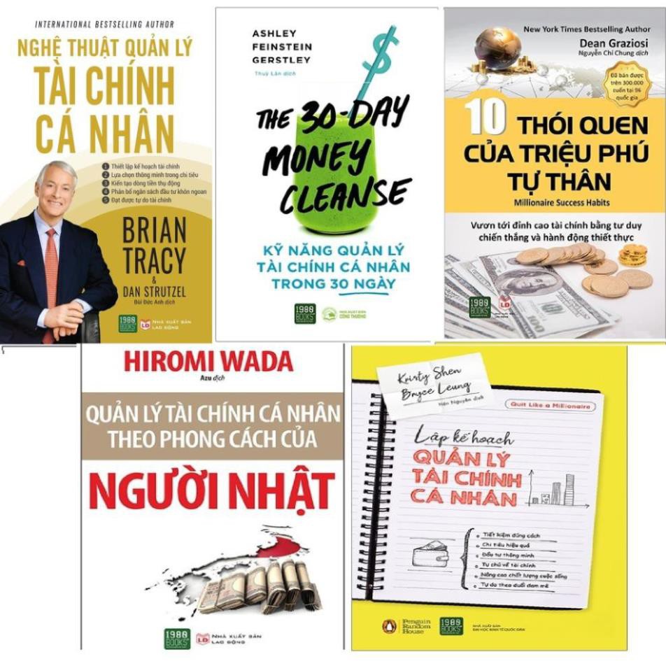 BẬT MÍ CÁCH TĂNG THU NHẬP VÀ QUẢN LÝ TÀI CHÍNH HIỆU QUẢ Bộ 5 cuốn sách về tài chính cá nhân gồm: 1. Kỹ năng quản lý tài chính cá nhân trong 30 ngày. Công ty phát hành: 1980 Books Tác giả: Ashley Feinstein Gerstley Nhà xuất bản: NXB Công Thương Năm xuất bản: 2019 Hình thức: Bìa Mềm Số trang: 258 Bằng chương trình Thanh lọc Tài Chính trong 30 ngày, “The 30-Day Money Cleanse: Kỹ năng quản lý tài chính cá nhân trong 30 ngày” giúp bạn định hình lại cách chi tiêu, thay đổi tư duy về tiền bạc và đảm bảo chúng ta quản lý tài chính cá nhân hiệu quả. Cuốn sách chính là cứu cánh cho mối quan hệ không mấy tốt đẹp của bạn với tiền bạc và giúp bạn vạch ra một kế hoạch chi tiêu để có thể vẫn vui vẻ mà không tốn kém. Lối tư duy tích cực và đúng đắn về tiền bạc mà Ashley đưa ra sẽ nhanh chóng hỗ trợ bạn hoàn thành các mục tiêu mà bạn mong muốn nhất trong đời. 2. Lập kế hoạch quản lý tài chính cá nhân. Công ty phát hành: 1980 Books Tác giả: Nhiều tác giả Nhà xuất bản: NXB Đại Học Kinh Tế Quốc Dân Năm xuất bản: 2019 Số trang: 524 “Lập kế hoạch quản lý tài chính cá nhân”trình bày chi tiết những bí quyết để một người hướng tới độc lập về tài chính và nghỉ hưu sớm, từ đó mãi mãi không phải lo lắng về tiền bạc và có thể tận hưởng cuộc sống theo đúng cách mình mong muốn. Dựa trên nền tảng là Quy tắc 4%, sau đó kết hợp với Tư duy Khan hiếm, Đệm đỡ Tiền mặt và Khiên chắn Lợi suất, cuốn sách cung cấp một chiến lược khoa học, đề cao tính ứng dụng đối với mỗi hoàn cảnh khác biệt. Các biểu đồ cụ thể, những công thức rõ ràng và các ví dụ dễ hiểu có trong “Lập kế hoạch quản lý tài chính cá nhân” giúp tất cả mọi người đều có thể tiếp cận với giải pháp của Kristy và Bryce, đồng nghĩa với việc bạn hoàn toàn có thể lặp lại thành công của họ: tự do về tài chính, không còn phải làm công việc mình không yêu thích, nghỉ hưu khi còn trẻ và du lịch khắp nơi trên thế giới – trong khi giá trị tài sản vẫn không ngừng tăng lên nhờ đầu tư đúng cách. 3. Nghệ thuật quản lý tài chính cá nhân. Công ty phát hành: 1980 Books Tác giả: Nhiều tác giả Nhà xuất bản: NXB Lao Động Năm xuất bản: 2019 Số trang: 324 Trong cuốn sách “Nghệ thuật quản lý tài chính cá nhân”, Brian Tracy cùng cộng sự Dan Strutzel sẽ liên tục vén lên những bức màn bí ẩn về tiền bạc, mạnh mẽ xóa sạch mọi nhầm tưởng hoang đường, thẳng thắn điểm mặt chỉ tên từng hành vi và thái độ lố bịch của con người trong việc kiếm tiền, tiêu tiền và sản sinh dòng tiền; đồng thời trực tiếp phơi bày cho bạn thấy, trong bộ môn nghệ thuật quản lý tài chính cá nhân vĩ đại, bạn là tay mơ hay một nghệ sĩ đại tài. Dù bạn cuồng say hay căm ghét đồng tiền, tôn sùng hay chối bỏ nó, bạn cũng không thể thoát khỏi vòng xoáy của nó. Hãy học cách làm chủ đồng tiền, làm chủ cuộc chơi với một trong những tác phẩm mới nhất của tác giả nổi tiếng Brian Tracy. 4. Quản lý tài chính cá nhân theo phong cách người Nhật. Công ty phát hành: 1980 Books Nhà xuất bản: Nhà Xuất Bản Lao Động Tác giả: Hiromi Wada Năm xuất bản: 01-2019 Kích thước: 13 x