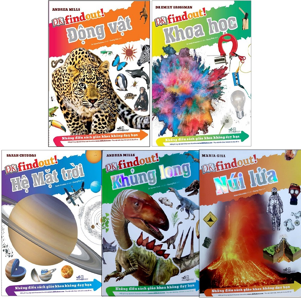 GIỚI THIỆU SÁCH Combo Những Điều Sách Giáo Khoa Không Dạy Bạn (Bộ 5 Cuốn) DK findout! Bộ sách gồm những thông tin bùng nổ và những bức ảnh đáng kinh ngạc. Đây là một cuốn sách nhỏ chở đầy ý tưởng lớn đính kèm website DK findout siêu hấp dẫn miễn phí toàn cầu! 1. Những Điều Sách Giáo Khoa Không Dạy Bạn: Động Vật Bạn đã bao giờ muốn biết một con bạch tuộc thì có bao nhiêu trái tim chưa? Hay vì sao một con chim cánh cụt không bao giờ sống ở sa mạc? ————————– Tên Nhà Cung Cấp Nhã Nam Tác giả Andrea Mills NXB NXB Hội Nhà Văn Năm XB 2019 Số trang 68 Hình thức Bìa Mềm ~~~~~~~~~~~~~~~~~~~~~~~~~~~~~~~~~~~~~~ 2. Những Điều Sách Giáo Khoa Không Dạy Bạn: Hệ Mặt Trời Bạn có muốn biết vành đai quanh Sao Thổ cấu tạo như thế nào không? Hay mất bao nhiêu thời gian để chúng ta bay đến Sao Diêm Vương? —————————- Tên Nhà Cung Cấp Nhã Nam Tác giả Sarah Cruddas NXB NXB Hội Nhà Văn Năm XB 2019 Số trang 68 Hình thức Bìa Mềm ~~~~~~~~~~~~~~~~~~~~~~~~~~~~~~~~~~~~ 3. Những Điều Sách Giáo Khoa Không Dạy Bạn: Khoa Học Bạn có muốn bao giờ muốn biết sét là cái gì chưa? Hay ai là người đã phát hiện ra lý do mọi vật đều rơi xuống đất? ———————– Tên Nhà Cung Cấp Nhã Nam Tác giả Dr Emily Grossman NXB NXB Hội Nhà Văn Năm XB 2019 Số trang 68 Hình thức Bìa Mềm ~~~~~~~~~~~~~~~~~~~~~~~~~~~~~~~~~~~~~ 4. Những Điều Sách Giáo Khoa Không Dạy Bạn: Khủng Long Bạn đã bao giờ muốn biết một con Argentinosaurus lớn chừng nào chưa? Phải tới đâu để tìm thấy khủng long bạo chúa T. rex nhỉ? ——————————– Tên Nhà Cung Cấp Nhã Nam Tác giả Andrea Mills Người Dịch Quang Phát NXB NXB Hội Nhà Văn Năm XB 2019 Số trang 68 Hình thức Bìa Mềm ~~~~~~~~~~~~~~~~~~~~~~~~~~~~~~~~~~~ 5. Những Điều Sách Giáo Khoa Không Dạy Bạn: Núi Lửa Bạn đã bao giờ muốn biết dung nham nóng đến như thế nào chưa? Hay vụ núi lửa phun trào nào gây ra nhiều cái chết nhất? ————————- Tên Nhà Cung Cấp Nhã Nam Tác giả Maria Gill NXB NXB Hội Nhà Văn Năm XB 2019 Số trang 68 Hình thức Bìa Mềm