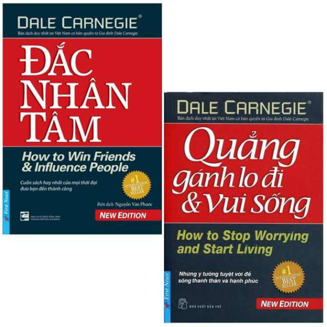 Sách – Combo Đắc Nhân Tâm + Quẳng Gánh Lo Đi – Top những cuốn sách kỹ năng hay nhất mọi thời đại Combo Đắc Nhân Tâm + Quẳng Gánh Lo Đi bao gồm hai tác phẩm là Đắc Nhân Tâm và Quẳng Gánh Lo Đi sẽ giúp các bạn trẻ có được một cuộc sống an nhiên, bớt đi những lo toan, muộn phiền. Nội dung của hai tác phẩm lần lượt như sau: Đắc Nhân Tâm Đắc Nhân Tâm – Được lòng người, là cuốn sách đưa ra các lời khuyên về cách thức cư xử, ứng xử và giao tiếp với mọi người để đạt được thành công trong cuộc sống. Gần 80 năm kể từ khi ra đời, Đắc Nhân Tâm là cuốn sách gối đầu giường của nhiều thế hệ luôn muốn hoàn thiện chính mình để vươn tới một cuộc sống tốt đẹp và thành công. Đắc Nhân Tâm cụ thể và chi tiết với những chỉ dẫn để dẫn đạo người, để gây thiện cảm và dẫn dắt người khác,… những hướng dẫn ấy, qua thời gian, có thể không còn thích hợp trong cuộc sống hiện đại nhưng nếu người đọc có thể cảm và hiểu được những thông điệp tác giả muốn truyền đạt thì việc áp dụng nó vào cuộc sống trở nên dễ dàng và hiệu quả. Đắc Nhân Tâm, từ một cuốn sách, hôm nay đã trở thành một danh từ để chỉ một lối sống mà ở đó con người ta cư xử linh hoạt và thấu tình đạt lý. Lý thuyết muôn thuở vẫn là những quy tắc chết, nhưng Nhân Tâm là sống, là biến đổi. Bạn hãy thử đọc “Đắc Nhân tâm” và tự mình chiêm nghiệm những cái đang diễn ra trong đời thực hiện hữu, chắc chắn bạn sẽ có những bài học cho riêng mình. Quẳng Gánh Lo Đi Cùng với Đắc Nhân Tâm, Quẳng Gánh Lo Đi – vui sống trong mọi hoàn cảnh là cuốn sách bán chạy nhất mọi thời đại của Dale Carnegie. Bạn sẽ tìm thấy những lời khuyên quý báu có thể giúp bạn giảm thiểu lo lắng rất đơn giản như chia sẻ với người khác, tìm cách để giải quyết vấn đề hay bỏ những điều phiền muộn ra khỏi suy nghĩ của bạn… Nếu thực hiện đều đặn những điều này mỗi ngày, bạn sẽ thấy cuộc sống của mình nhẹ nhàng hơn rất nhiều, bởi bớt một chút phiền muộn là ta đã có thêm niềm vui. Nói thì có vẻ dễ nhưng những vấn đề liên quan đến các trạng thái tinh thần chẳng bao giờ là dễ dàng để giải quyết. Chấm dứt lo lắng là điều không thể nhưng bớt đi sự lo lắng thì có thể, chỉ cần bạn đủ quyết tâm. #dacnhantam #sachhay Nhà phát hành First New – Trí Việt Nhà xuất bản Nhà Xuất Bản Tổng hợp TP.HCM Tác giả Dale Carnegie Kích thước 14.5 x 20.5 cm Loại bìa Bìa mềm Số trang 311 Ngày xuất bản 6-2018 Cùng với Đắc Nhân Tâm, Quẳng Gánh Lo Đi – vui sống trong mọi hoàn cảnh là cuốn sách bán chạy nhất mọi thời đại của Dale Carnegie. Bạn sẽ tìm thấy những lời khuyên quý báu có thể giúp bạn giảm thiểu lo lắng rất đơn giản như chia sẻ với người khác, tìm cách để giải quyết vấn đề hay bỏ những điều phiền muộn ra khỏi suy nghĩ của bạn… Nếu thực hiện đều đặn những điều này mỗi ngày, bạn sẽ thấy cuộc sống của mình nhẹ nhàng hơn rất nhiều, bởi bớt một chút phiền muộn là ta đã có thêm niềm vui. Nói thì có vẻ dễ nhưng những vấn đề liên quan đến các trạng thái tinh thần chẳng bao giờ là dễ dàng để giải quyết. Chấm dứt lo lắng là điều không thể nhưng bớt đi sự lo lắng thì có thể, chỉ cần bạn đủ quyết tâm. Nhà phát hành First New – Trí Việt Nhà xuất bản Nhà Xuất Bản Tổng hợp TP.HCM Tác giả Dale Carnegie Kích thước 14.5 x 20.5 cm Loại bìa Bìa mềm Số trang 311 Ngày xuất bản 6-2018