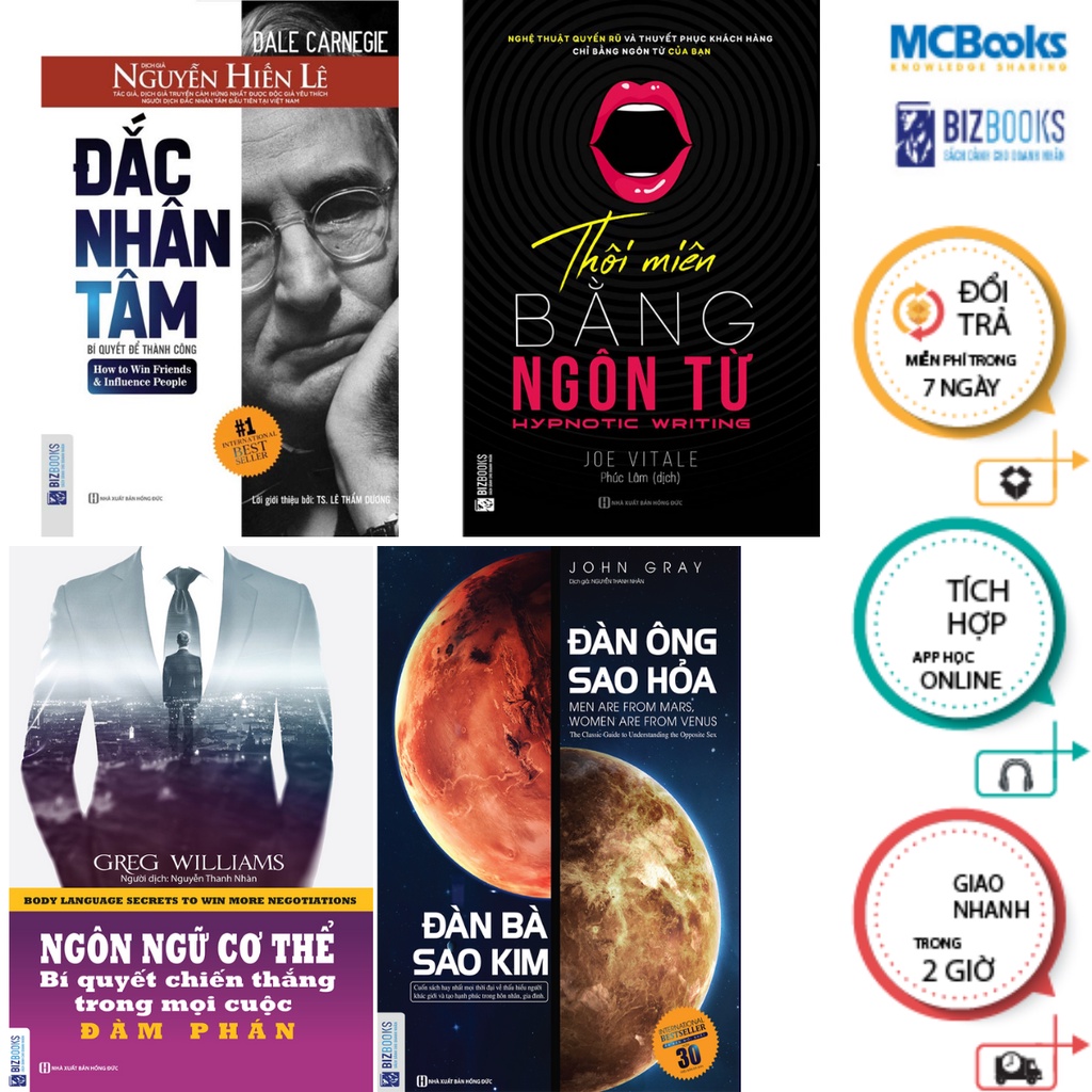 Ebook Combo Đắc Nhân Tâm+Thôi Miên Bằng Ngôn Từ+Đàn Ông Sao Hỏa Đàn Bà Sao Kim+Ngôn Ngữ Cơ Thể pdf review doc epub prc mobi word wattpad audio mp3 sách nói đọc online Tác giả: BizBooks.