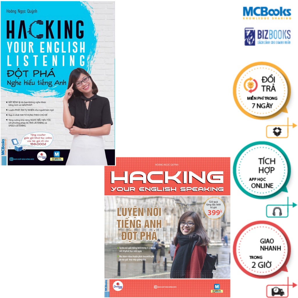 1. Combo Đột phá 2 Kĩ năng Nghe – Nói trong tiếng anh – HACKING YOUR ENGLISH (listening + speaking) học kèm app ebook