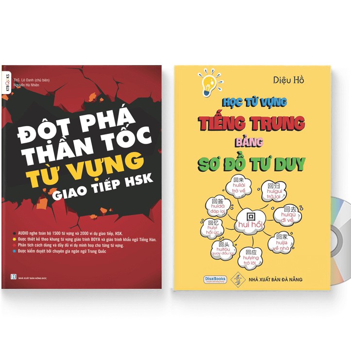 1. Combo: Đột Phá Thần Tốc Từ Vựng Giao Tiếp HSK + Học từ vựng tiếng Trung bằng sơ đồ tư duy + Kèm DVD quà tặng ebook