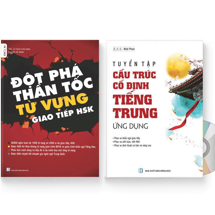 1. Combo: Đột Phá Thần Tốc Từ Vựng Giao Tiếp HSK + Tuyển tập Cấu trúc cố định tiếng Trung ứng dụng + DVD quà tặng ebook