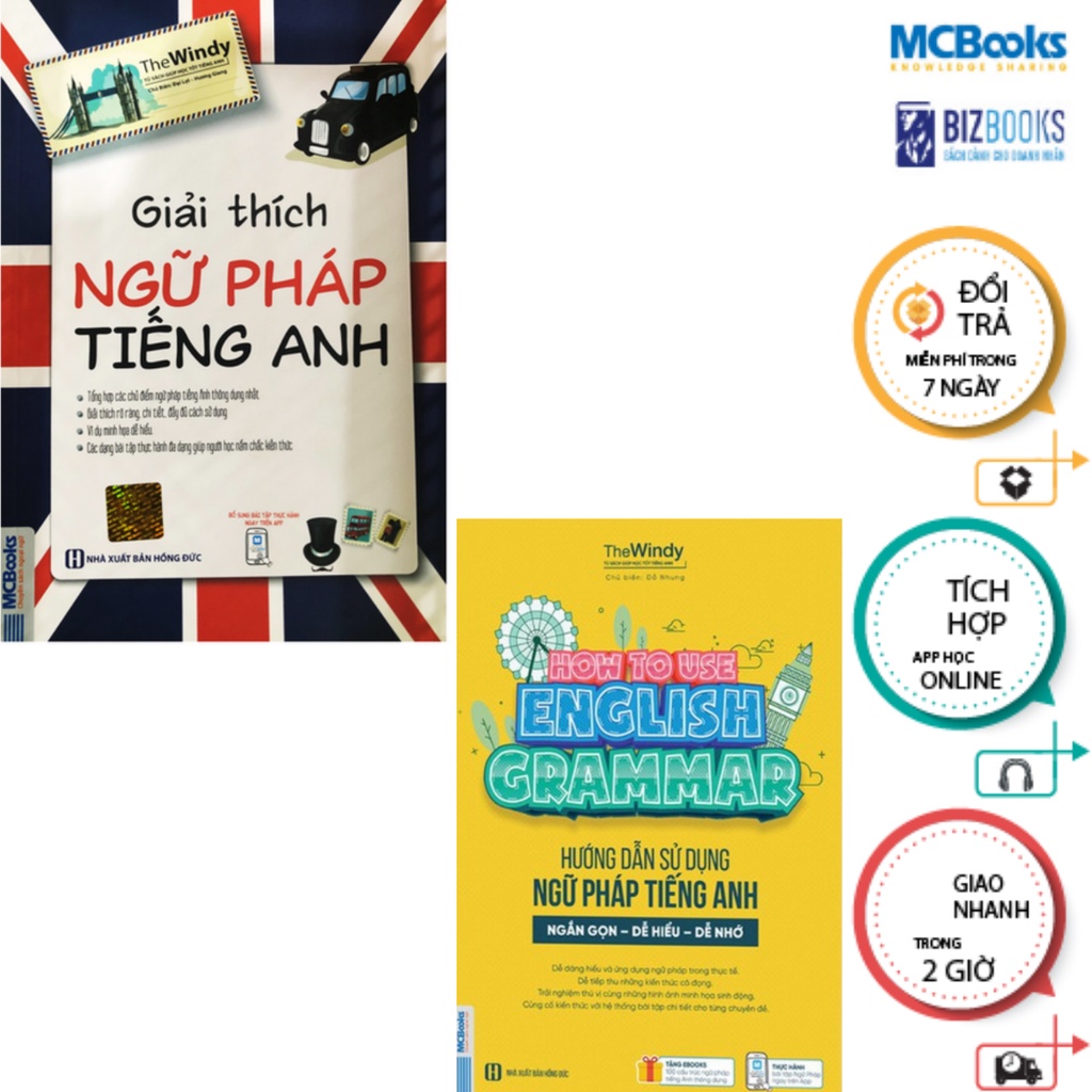 1. Giải thích ngữ pháp tiếng Anh Công ty phát hành MCBOOKS Tác giả The Windy Nhà xuất bản Hồng Đức Năm xuất bản 2020 Số trang 615 Giới thiệu sách Cuốn sách bao gồm 13 chương, được trình bày một cách khoa học, dễ hiểu, dễ đọc và dễ dàng sử dụng cho những bạn thích tham khảo. Những lý thuyết được đề cập trong sách đi vào những phần ngữ pháp trọng tâm, giải thích một cách rõ ràng về cách thức sử dụng chúng vào từng trường hợp cụ thể bên cạnh các bài tập đa dạng từ căn bản đến nâng cao, hướng dẫn người học từng bước vận dụng ngữ pháp tiếng Anh một cách thành thạo. Cuốn sách tổng hợp đầy đủ kiến thức ngữ pháp cơ bản từ bậc tiểu học, trung học cơ sở, trung học phổ thông và các kiến thức nâng cao. Thông qua 13 chương, người học có thể ôn tập được hết các chủ điểm ngữ pháp tiếng Anh một cách có hệ thống. Giải thích rõ ràng, chi tiết, đầy đủ cách sử dụng Từng chủ điểm ngữ pháp được giải thích chi tiết rõ ràng, phần kiến thức trọng tâm, những nội dung dễ gây nhầm lẫn được nhấn mạnh. Phần giải thích bằng cả tiếng Anh lẫn tiếng Việt giúp người học dễ tiếp thu. Học cùng cuốn sách các bạn sẽ rút gọn được thời gian khi không phải loay hoay tìm hiểu từ các nguồn tài liệu khác vì tất cả đã được cô đọng trong hơn 600 trang giấy. ———————————————————————- 2. Hướng dẫn sử dụng ngữ pháp tiếng Anh Công ty phát hành MCBOOKS Tác giả The Windy Nhà xuất bản Hồng Đức Năm xuất bản 2020 Số trang 320 Giới thiệu sách Cùng với thời đại hội nhập, tiếng Anh luôn được coi là một chiếc cầu nối đến với kho tàng tri thức dồi dào của nhân loại, và là ngôn ngữ chính trong các tình huống giao tiếp hàng ngày và công việc. Vì vậy học tiếng Anh là một việc cần thiết và quan trọng. Trong tiếng Anh, ngữ pháp giữ vai trò quan trọng, là nền tảng cơ bản cho việc học các kỹ năng khác. Khi bắt tay vào học ngữ pháp tiếng Anh bạn không biết phải bắt đầu từ đâu và có quá nhiều ngữ pháp khiến bạn hoang mang. Việc tham gia học tập tại cũng trung tâm thường đắt đỏ và không chắc chắn mang lại hiệu quả? Vì vậy một cuốn sách tự học ngữ pháp và có hướng dẫn giải thích chi tiết là giải pháp tuyệt vời nhất cho bạn tự học tiếng Anh tại nhà. Hướng dẫn sử dụng ngữ pháp tiếng Anh được nhóm tác giả The Windy công ty cổ phần sách MCBooks tỉ mỉ biên soạn vớ những chủ điểm ngữ pháp quan trọng nhất trong tiếng Anh, lý thuyết và bài tập thực hành bám sát kiến thức trên lớp đặc biệt dành cho học sinh, sinh viên muốn nắm vững ngữ pháp tiếng Anh.