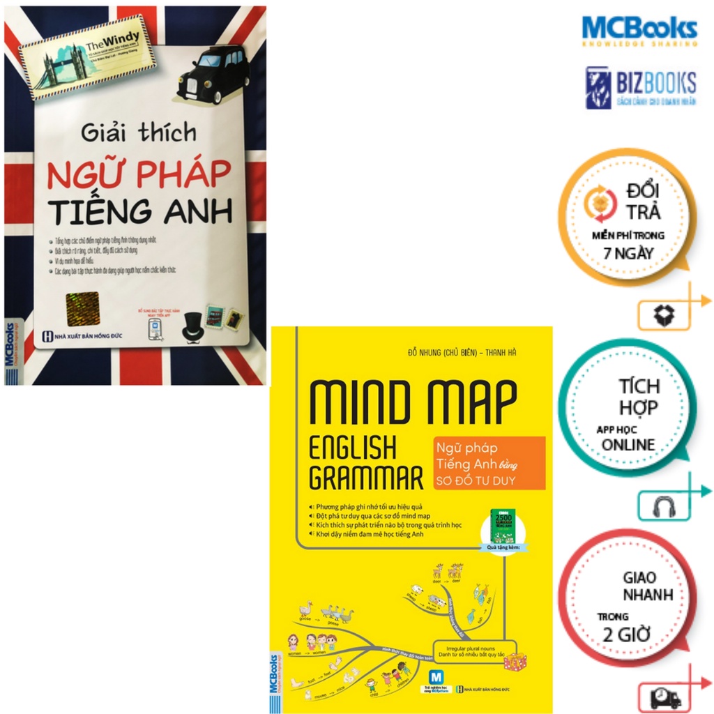1 / Mind Map English Grammar – Ngữ pháp tiếng anh bằng sơ đồ tư duy Công ty phát hành MCBOOKS Tác giả Đỗ Nhung Nhà xuất bản Hồng Đức Năm xuất bản 2020 Số trang 335 Hiện nay, khi các tài nguyên cho học tập ngày càng đa dạng, việc học thế nào dần được mọi người chú tâm hơn. Có rất nhiều phương pháp học tập cũng vì vậy mà ra đời. Trong đó, đặc biệt phổ biến chính là phương pháp học bằng sơ đồ tư duy. Sơ đồ tư duy đã là một công cụ nổi tiếng khắp thế giới, rất có thể bạn đã từng sử dụng nó trong việc ghi chép bài trên lớp, lên ý tưởng, kế hoạch, giải quyết vấn đề, và đạt được nhiều kết quả rất thú vị. Vậy bạn đã từng thử ứng dụng học từ vựng tiếng Anh bằng sơ đồ tư duy chưa? Vậy khi học từ vựng tiếng anh bằng sơ đồ tư duy, bạn giải quyết được các vấn đề này: Màu sắc giúp đánh dấu và phân biệt giữa các từ, các nhóm và chủ đề Hình ảnh giúp bạn dễ dàng hình dung và ghi nhớ từ, cấu trúc ngữ pháp Sử dụng bản đồ tư duy, bạn sẽ tìm ra được mối quan hệ giữa từ vựng, cấu trúc ngữ pháp, từ đó dễ dàng ứng dụng và tiết kiệm thời gian ghi nhớ. Hơn thế nữa, khi bạn lập một bản đồ tư duy, bạn cũng cần vận dụng nhiều sự sáng tạo và trí tưởng tượng linh hoạt của mình. Đó chính là lý do vì sao học Mind Map English Grammar – Ngữ pháp tiếng anh bằng sơ đồ tư duy giúp bạn ghi nhớ từ vựng nhanh hơn và học được nhiều từ hơn theo cụm chủ đề trong khi học tiếng anh giao tiếp 2/ Giải thích ngữ pháp tiếng Anh Thông tin sản phẩm: – Công ty phát hành: MCBooks – Tác giả: The Windy – Ngày xuất bản: 2020 – Kích thước: 17 x 24 cm – Nhà xuất bản: Nhà xuất bản Hồng Đức – Loại bìa: Bìa mềm – Số trang: 382 Trang Bí quyết học ngữ pháp tiếng Anh đơn giản mà hiệu quả Ngày nay tiếng Anh được coi là ngôn ngữ Quốc tế. Học giỏi tiếng Anh bạn không chỉ có cơ hội giao lưu, kết bạn với mọi người trên thế giới mà đó còn là chìa khóa mở rộng cánh cửa tri thức. Các bạn học ngữ pháp tiếng Anh có đang gặp những vấn đề này không? Bạn đang mất gốc và không biết bắt đầu từ đâu? Với lượng kiến thức rộng lớn nếu không có phương pháp học đúng hướng thì sẽ rất khó để bạn có thể học tốt tiếng Anh. Nhiều bạn do hổng kiến thức từ những lớp dưới dẫn tới hiện tượng mất gốc tiếng Anh và chán nản khi nhắc tới môn học này. Nguy hiểm hơn nếu để để hiện tượng này kéo dài bạn sẽ phải bỏ lỡ nhiều cơ hội tốt. Một số trường hợp muốn bắt đầu lại học tiếng Anh nhưng lại không biết học bắt đầu từ đâu, học cái nào trước, cái nào sau và học từ những tài liệu nào. Trên thị trường có rất nhiều sách tham khảo ngữ pháp, nhưng những cuốn sách phù hợp với bạn thì rất ít. Số lượng các chủ điểm ngữ pháp tiếng Anh quá nhiều Ngữ pháp không chỉ giúp các bạn vượt qua những kỳ thi mà còn giúp ích rất nhiều trong việc giao tiếp hằng ngày. Nhưng để thành thạo ngữ pháp tiếng Anh không phải là việc dễ dàng. Anh văn có quá nhiều chủ điểm ngữ pháp mà các bạn cần ghi nhớ. Chỉ riêng 12 thì cũng đã làm nhiều bạn phải “đau đầu”. Những nội dung dễ nhưng nhiều bạn vẫn nhầm lẫn trong cách sử dụng chứ chưa nói đến các phần kiến thức nâng cao. Đâu là phương pháp học tập hiệu quả mà các em đang tìm kiếm? So với việc học nghe, học nói, học giao tiếp thì việc học ngữ pháp tiếng Anh lại khá khô khan. Nhiều bạn chán nản với số lượng các cấu trúc ngữ pháp. Dù đã học thuộc, chép đi chép lại nhiều lần nhưng khi đi thi vẫn không chọn được đáp án đúng. Liệu có phương pháp học tập nào hỗ trợ các bạn không? Các bạn đang học tiếng Anh nhưng lại phải mất khá nhiều thời gian cho việc giải quyết các vấn đề. Đừng lo lắng vì các bạn sẽ tìm được cứu tinh ngữ pháp rất nhanh và hiệu quả thông qua cuốn sách “Giải thích ngữ pháp tiếng Anh”. Cuốn sách “Giải thích ngữ pháp tiếng Anh” có gì đặc biệt Tổng hợp các chủ điểm ngữ pháp tiếng Anh thông dụng nhất Cuốn sách tổng hợp đầy đủ kiến thức ngữ pháp cơ bản từ bậc tiểu học, trung học cơ sở, trung học phổ thông và các kiến thức nâng cao. Thông qua 13 chương, người học có thể ôn tập được hết các chủ điểm ngữ pháp tiếng Anh một cách có hệ thống.