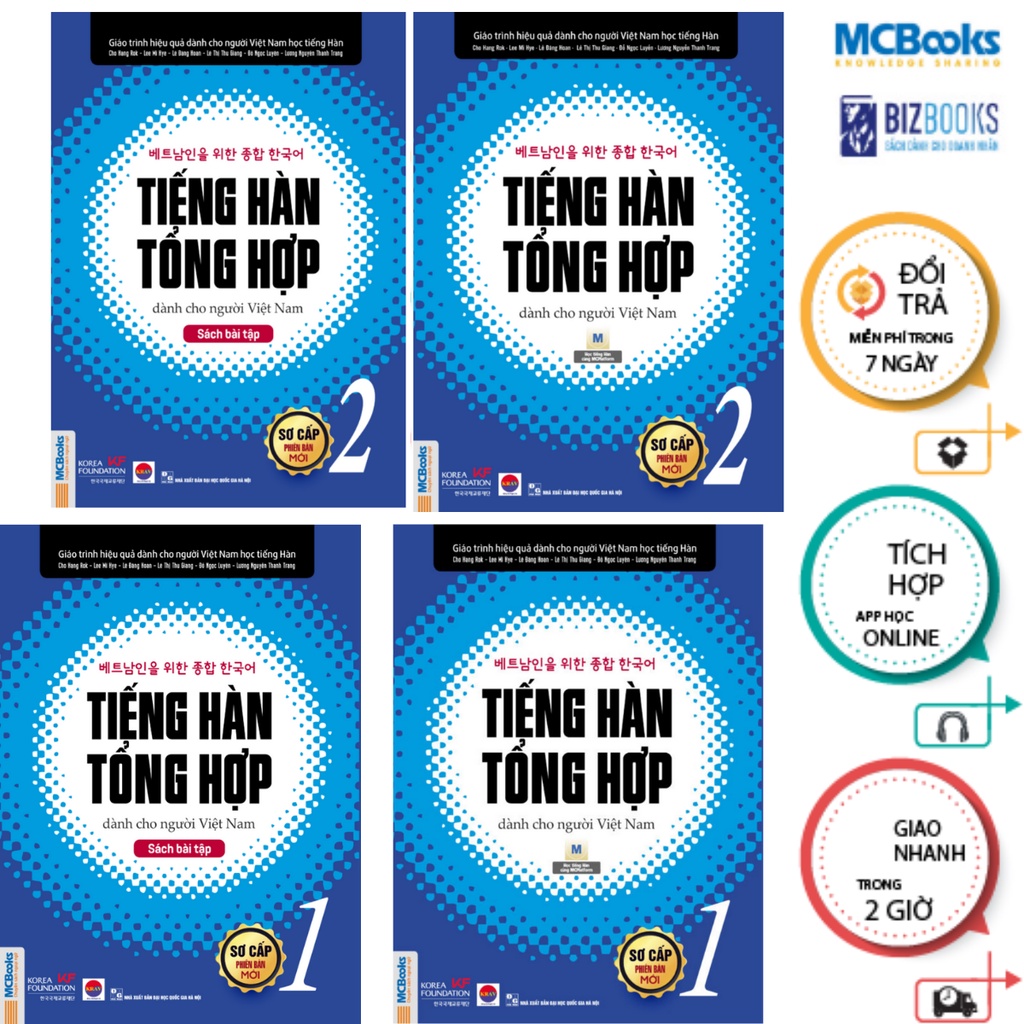 1. Giáo Trình Tiếng Hàn Tổng Hợp Dành Cho Người Việt Nam – Sơ Cấp 1 Công ty phát hành MCBOOKS Tác giả: Nhiều Tác Giả Ngày xuất bản 11-2020 Kích thước 19×27 Loại bìa Bìa mềm Số trang 378 SKU 7816136305130 Nhà xuất bản Nhà Xuất Bản Đại Học Quốc Gia Hà Nội 2. Giáo Trình Tiếng Hàn Tổng Hợp Dành Cho Người Việt Nam – Sơ Cấp 2 Công ty phát hành MCBOOKS Tác giả: Nhiều Tác Giả Ngày xuất bản 11-2019 Kích thước 19×27 Loại bìa Bìa mềm Số trang 363 SKU 8664577237201 Nhà xuất bản Nhà Xuất Bản Đại Học Quốc Gia Hà Nội Giáo trình tiếng Hàn tổng hợp lần đầu tiên được trao bản quyền chính thức tại Việt Nam Hiểu được điều đó, ngày 4-7, Đại diện chính phủ Hàn Quốc, ngài Woo Hyeong Min – Trưởng đại diện Văn phòng Quỹ giao lưu Quốc tế HQ tại Việt Nam cùng GS.TS.NGƯT Mai Ngọc Chừ – Chủ tịch Hội Nghiên cứu khoa học về Hàn Quốc của Việt Nam (KRAV) đã trao quyết định cho phép Công ty Cổ phần sách MCBooks của Việt Nam được xuất bản cuốn sách này tại thị trường Việt Nam. Và đây chính là bộ giáo trình tiếng Hàn tổng hợp đầu tiên có bản quyền chính thức có mặt tại Việt Nam. Cũng theo ông Woo Hyeong Min, Thực tế đây là bộ giáo trình chính thống mà tất cả người học tiếng Hàn tại Việt Nam cần sử dụng. Tuy nhiên nhiều năm qua bộ sách đến tay người dùng đều là sách lậu nên chưa đạt được kết quả mà chính phủ Hàn muốn mang tới Việt Nam. Do đó Chính phủ Hàn Quốc đã quyết định tìm 1 đơn vị xuất bản uy tín của Việt Nam để giúp họ mang đến cho người học những cuốn sách tiếng Hàn chất lượng tốt với giá cả hợp lý. Bộ giáo trình được Hội nghiên cứu khoa học Hàn Quốc của Việt Nam biên soạn và hiệu đính. Bộ giáo trình sẽ giúp nâng cao hiệu quả trong việc sử dụng ngôn ngữ Hàn sau tiếng mẹ đẻ và tiếng Anh, là nền tảng giúp người lao động Việt Nam nhận được những vị trí làm việc cao trong doanh nghiệp Hàn Quốc. Đây cũng là cách để thúc đẩy quan hệ hợp tác về văn hoá và giáo dục giữa hai nước trong thời gian tới. Giới thiệu cuốn Giáo trình tiếng Hàn tổng hợp dành cho người Việt Nam – Sơ cấp 1 Giáo trình tổng hợp tiếng Hàn sơ cấp 1 Giáo trình tiếng Hàn tổng hợp dành cho người Việt Nam – Sơ cấp 1 được biên soạn dành cho người Việt Nam muốn học tiếng Hàn ở trình độ sơ cấp. Sách được biên soạn nhằm hướng tới việc sử dụng được trong các tiết học tiếng Hàn tại giảng đường đại học nên mỗi bài học được chia thành nhiều phần như: Lý thuyết cơ bản gồm từ vựng và cấu trúc ngữ pháp; phần luyện tập theo 4 kỹ năng giao tiếp như: Nghe – Nói – Đọc – Viết, phần luyện phát âm, phần tìm hiểu văn hóa… Các chủ đề trong sách được sắp xếp một cách có hệ thống và liên quan chặt chẽ với nhau. Giáo trình tiếng Hàn tổng hợp được biên soạn kèm theo một cuốn sách bài tập hỗ trợ giúp người học ôn tập kỹ hơn và có thể luyện tập nâng cao trong những trường hợp cần thiết. Nội dung trong Giáo trình tiếng Hàn tổng hợp – Sơ cấp 1 2 cuốn sách trong bộ Sơ cấp được xây dựng với 30 bài khóa và bảng chữ cái. Trong đó quyển 1 gồm phần bảng chữ cái và 15 bài đầu. Học hết quyển 1, bạn sẽ học đến quyển sơ cấp 2 với 15 bài còn