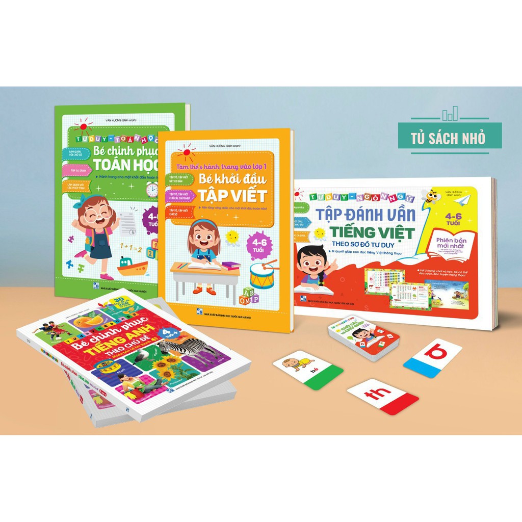 BỘ SÁCH PHÁT TRIỂN TOÀN DIỆN CHO CÁC BÉ CHUẨN BỊ VÀO LỚP MỘT 1. Tư duy Ngôn ngữ – TẬP ĐÁNH VẦN TIẾNG VIỆT theo sơ đồ tư duy – Phiên bản Mới nhất, 124 trang. – Cuốn sách dạy bé bé học ghép vần nhanh nhất theo phương pháp khoa học – Bổ sung phần Đọc Câu, Đọc Từ, Đọc Đoạn Bài trong từng vần, từng trang. – Bổ sung phần LUYỆN ĐỌC với những bài Đồng dao, Thơ, mẩu truyện dễ nhớ, dễ thuộc, nội dung hấp dẫn trẻ. – Gáy sách được khâu chắc chắn. 2. Tâm thế & hành trang vào lớp 1 – BÉ KHỞI ĐẦU TẬP VIẾT – 100 trang. – Biên soạn dựa trên nghiên cứu khởi đầu tập viết chuẩn mực. – Tập tô – viết theo nhóm nét: học nét nào, tập tô – viết nhóm chữ cái sử dụng nét đó. – Được đánh giá là cuốn Tập viết hoàn hảo gồm đủ nội dung – Hướng dẫn tư thế ngồi viết, Cách cầm bút đúng cách. – Tập tô – Tập viết: Nét cơ bản, Chữ cái, chữ ghép, Chữ số. 3. BÉ CHINH PHỤC TOÁN HỌC, 96 trang. – Cuốn sách Toán Best Seller dành cho trẻ từ 4-6 tuổi năm 2020. Sách dày 96 trang, 4 màu, khổ A4 20.5×29.5 cm, gồm 3 phần: Làm quen với chữ số và tập tô số; Tập so sánh; Làm quen với các phép tính. – Các bài học từ cơ bản đến nâng cao được minh họa bằng các hình ảnh ngộ nghĩnh, thu hút trẻ giúp bé yêu thích môn Toán, hứng thú với việc học tập. 4. Tạo dựng nền tảng ngôn ngữ – BÉ CHINH PHỤC TIẾNG ANH THEO CHỦ ĐỀ – Phiên bản ÂM THANH; 96 trang – Cuốn Từ điển Tranh sống động, bắt mắt như cả thế giới mở ra trước mắt bé với 30 chủ đề quen thuộc, gần gũi gồm hơn 1000 từ vựng khởi đầu cho bé. – Sách được biên soạn công phu, nội dung khoa học, hình ảnh hấp dẫn. Mỗi trang sách, mỗi chủ đề như một câu chuyện sống động bằng hình ảnh. – Điểm đặc biệt của cuốn sách là sự kết hợp giữa hình ảnh với âm thanh, hỗ trợ đắc lực cho thầy cô trong quá trình giảng dạy. Bố mẹ sẽ dễ dàng hướng dẫn con học mà không ngần ngại mình Đọc Sai Tiếng Anh. – Chỉ cần quét mã code, từ vựng trong sách sẽ được ĐỌC CHUẨN BẢN NGỮ, bé sẽ hào hứng đọc theo một cách tự nhiên. Não bộ bé lúc này như trang giấy trắng nên sẽ tiếp nhận từ vựng chuẩn với tâm thế hết sức thích thú, chắc chắn sẽ mang lại hiệu quả tốt. 5. Thẻ tập đánh vần – 42 Thẻ Học Flash Card Chữ Cái Và Chữ Ghép Cho Bé – Bộ thẻ đi kèm gồm 29 chữ cái,11 chữ ghép và 5 dấu thanh – Loại giấy: đẹp – Nội dung: Giúp bé biết ghép vần thành thạo và làm quen chữ cái. – Sản phẩm giúp bé tập ghép các chữ cái để đọc. – Kích thước: 10x15cm ~~~~~~~~~~~~~~~~~~~ Thông tin sản phẩm: – Nhà phát hành: Công Ty TNHH Sách và Thiết Bị Giáo Dục ID – Nhà xuất bản: NXB Đại học Quốc Gia Hà Nội – Năm xuất bản: 2020 – Tác giả: Nhiều tác giả – Số trang: 96 trang #tusachnho #hanhtrangchobevaolopmot #sachhaychocon