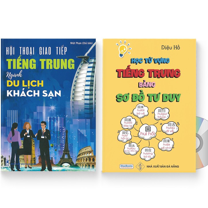 Sách – Combo: Hội Thoại Giao Tiếp Tiếng Trung Ngành Du Lịch Khách Sạn + Học từ vựng tiếng Trung bằng sơ đồ tư duy Hội Thoại Giao Tiếp Tiếng Trung Ngành Du Lịch Khách Sạn Giới thiệu sách: Hội Thoại Giao Tiếp Tiếng Trung Ngành Du Lịch Khách Sạn Tác giả: Nhật Phạm Số trang: 200 Năm xuất bản: 2019 Nhà Xuất Bản: Thanh Niên Bao gồm 40 nội dung ứng dụng trong giao tiếp khách sạn du lịch nằm trong 6 chương lớn (Có trong ảnh ở bài đăng) Sách biên soạn phù hợp cho các nhân viên khách sạn nhà hàng, hướng dẫn viên du lịch và các khách hàng giao dịch với các nhà hàng khách sạn, cửa hàng sử dụng tiếng Trung! Sách được tổng hợp biên soạn bởi NP BOOKS, kiểm duyệt nội dung chuyên gia Hạ Bắc Sinh (chuyên gia ngôn ngữ người Trung Quốc) Học từ vựng tiếng Trung bằng sơ đồ tư duy Giới thiệu sách: Học từ vựng tiếng Trung bằng sơ đồ tư duy Nội dung sách: Cuốn sách mang sứ mệnh giúp người học sau khi đã làm quen với chữ Hán, có thể nhanh chóng tiếp cận với nguồn từ ghép của các chữ Hán Tác giả: Diệu Hồ Số trang: 308 Năm xuất bản: 2019 Nhà xuất Bản: Đà Nẵng Giá bìa: 300000 VNĐ