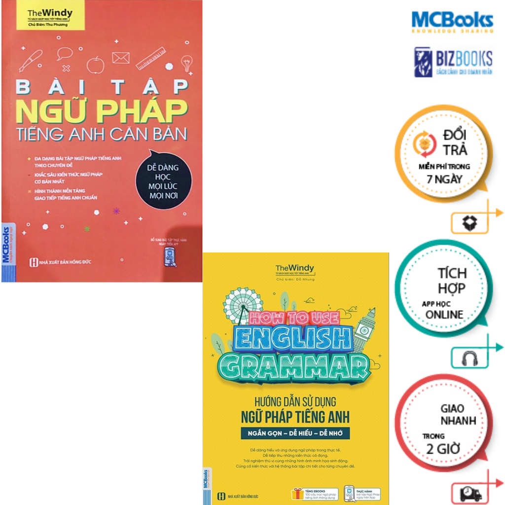 1. Hướng dẫn sử dụng ngữ pháp tiếng Anh Công ty phát hành MCBOOKS Tác giả The Windy Nhà xuất bản Hồng Đức Năm xuất bản 2020 Số trang 320 Giới thiệu sách Cùng với thời đại hội nhập, tiếng Anh luôn được coi là một chiếc cầu nối đến với kho tàng tri thức dồi dào của nhân loại, và là ngôn ngữ chính trong các tình huống giao tiếp hàng ngày và công việc. Vì vậy học tiếng Anh là một việc cần thiết và quan trọng. Trong tiếng Anh, ngữ pháp giữ vai trò quan trọng, là nền tảng cơ bản cho việc học các kỹ năng khác. Khi bắt tay vào học ngữ pháp tiếng Anh bạn không biết phải bắt đầu từ đâu và có quá nhiều ngữ pháp khiến bạn hoang mang. Việc tham gia học tập tại cũng trung tâm thường đắt đỏ và không chắc chắn mang lại hiệu quả? Vì vậy một cuốn sách tự học ngữ pháp và có hướng dẫn giải thích chi tiết là giải pháp tuyệt vời nhất cho bạn tự học tiếng Anh tại nhà. Hướng dẫn sử dụng ngữ pháp tiếng Anh được nhóm tác giả The Windy công ty cổ phần sách MCBooks tỉ mỉ biên soạn vớ những chủ điểm ngữ pháp quan trọng nhất trong tiếng Anh, lý thuyết và bài tập thực hành bám sát kiến thức trên lớp đặc biệt dành cho học sinh, sinh viên muốn nắm vững ngữ pháp tiếng Anh. 2. Bài Tập Ngữ Pháp Tiếng Anh Căn Bản Công ty phát hành: MCBooks Tác giả: The Windy Nhà xuất bản: NXB Đại Học Quốc Gia Hà Nội Năm xuất bản: 2020 Số trang: 275 Giới thiệu sách Khi bạn nghe – nói – đọc – viết tiếng Anh, nếu không chắc kiến thức về ngữ pháp thì bạn sẽ không thể hiểu hết ý của người nói. Vì trong tiếng Anh, từ ngữ sẽ chia theo thì (nói về thời gian), SỐ ít, SỐ nhiều… kèm các giới từ (chỉ vị trí, thời gian, nơi chốn,…) khá là phức tạp. Nếu ứng dụng nhầm kiến thức ngữ pháp tiếng Anh sẽ gây khó chịu và bối rối cho người nghe và người đọc. Do đó, ngữ pháp được coi là nền tảng của giao tiếp tiếng Anh. Ngữ pháp luôn là những cấu trúc câu khô khan, hình thức chia từ phức tạp nhưng nếu học và luyện tập đúng cách với bộ sách Ngữ pháp tiếng Anh căn bản và Bài tập ngữ pháp tiếng Anh căn bản, bạn sẽ thấy ngữ pháp dễ dàng hơn rất nhiều và ghi nhớ kiến thức một cách hiệu quả.