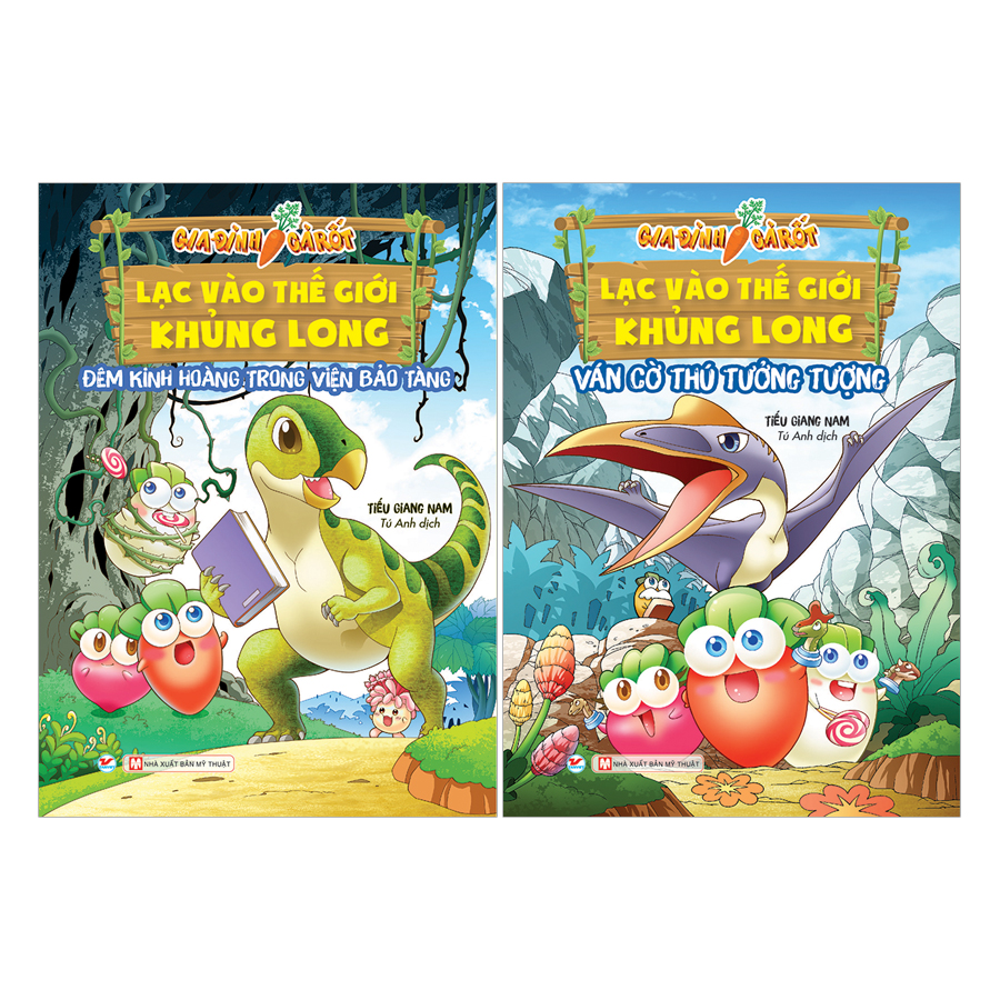 Bộ truyện tranh sẽ đưa các bạn nhỏ đến với kỉ Đại Trung Sinh cách đây hàng trăm triệu năm, tiếp cận loài sinh vật kì lạ thần bí mang tên khủng long, tìm hiểu về thời cổ xưa của Hành Tinh Xanh – nơi chúng ta đang sinh sống. Hình vẽ tinh tế, đáng yêu cùng với những câu chuyện sống động, thú vị sẽ giúp các em có cảm hứng hơn với khoa học, bồi dưỡng tinh thần dũng cảm, thích học hỏi, không ngừng tìm hiểu về thế giới mới lạ. Đêm kinh hoàng trong viện bảo tàng: Để tìm lại chiếc máy ảnh thất lạc, trong đêm tối Cà rốt Ngốc nghếch đã lặng lẽ xâm nhập vào Viện bảo tàng Thiên nhiên. Cậu phát hiện ra ban ngày mọi hoạt động ở viện bảo tàng rất bình thường, nhưng về đêm nơi đây biến thành một không gian thần bí: các sinh vật thời tiền sử đều sống lại! Voi ma mút và hổ răng kiếm oai phong lẫm liệt ngự ngay tại sảnh, khỉ đột và gấu xám Bắc Mỹ nhìn trừng trừng ở phía góc phò Nhận được tin, Cà Rốt Dũng Cảm và Cà Rốt Xinh Đẹp nhanh chóng chạy đến. Bị hổ răng kiếm và sói Canis Dirus truy đuổi, ba bạn nhỏ đã trốn vào khu trưng bày sinh vật kỉ Phấn Trắng. Tại đây, họ đã kết bạn với khủng long Psittacosaurus, Caudipterys, mở ra một chuyến hành trình mạo hiể Ván cờ thú tưởng tượng: Trong lúc dọn phòng, ông Cà rốt Bác Học tìm thấy bộ cờ khủng long đã cũ liền tiện tay vứt đi. Bộ cờ ấy lại ẩn chứa những bí mật nên khi màn đêm vừa buông xuống, các quân cờ đều biến thành khủng long, làm đảo lộn cả thị trấn Cà rốt. Trong lúc ngụy cấp ấy, thằn lằn có cánh Quetzacoatlus đã bay đến cứu ông Bác Học và các bạn cà rốt. Quetzacoatus còn cho biết, những kẻ đại náo thị trấn Cà rốt thực ra chỉ là linh hồn của khủng long, chúng không chịu rời khỏi thị trấn bởi vẫn còn nguyên tâm nguyện lúc còn sống chưa thực hiện được. Dưới sự giúp đỡ của Quetzacoatlus, ông Bác Học và các bạn cà rốt lần lượt xâm nhập vào hệ thống kí ức của khủng long, giúp chúng hoàn thành tâm nguyện và thanh thản ra đi. Những ngày sau đó, bí mật về bộ cờ khủng long cũng dần được sáng tỏ