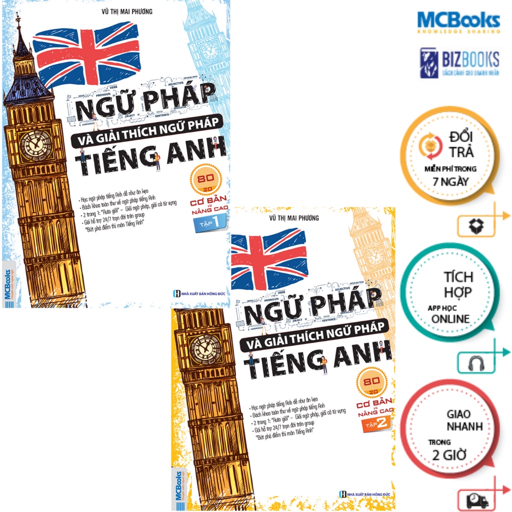 – Combo Ngữ Pháp Và Giải Thích Ngữ Pháp Tiếng Anh Cơ Bản Và Nâng Cao ( Dùng App ) Tặng kèm bookmark Công ty phát hành MCBOOKS Tác giả Vũ Thị Mai Phương Ngày xuất bản 12-2020 Kích thước 19 x 27 cm Nhà xuất bản Nhà Xuất Bản Hồng Đức Loại bìa Bìa mềm Số trang 383 GIỚI THIỆU SÁCH Cuốn sách ” Ngữ Pháp và giải thích Tiếng Anh” cơ bản và nâng cao tập 1, việc tiếp nhận và trao rồi, rèn luyện ngữ pháp tiếng anh cần cho mọi đối tượng muốn học ngôn ngữ này. Từ các em học sinh THPT, các em học sinh THCS, các bạn sinh viên, đến người đi làm, hay bất kì ai muốn có chứng chỉ quốc tế về tiếng anh. Bộ sách gồm 2 cuốn: tập 1 và 2, truyền tải toàn bộ hệ thống kiến thức ngữ pháp tiếng anh thông dụng được triển khai theo cấu trúc 80% cơ bản và 20% nâng cao. Tập 1: 1. Danh Từ 2.Đại Từ 3. Tính Từ 4. Trạng Từ 5. So Sánh 6. Động Từ 7. Cụm động từ 8. Giới từ 9. Liên từ 10. Mạo từ Công ty phát hành MCBOOKS Tác giả Vũ Thị Mai Phương Ngày xuất bản 12-2020 Kích thước 19 x 27 cm Nhà xuất bản Nhà Xuất Bản Hồng Đức Loại bìa Bìa mềm Số trang 294 GIỚI THIỆU SÁCH Cuốn sách ” Ngữ Pháp và giải thích Tiếng Anh” cơ bản và nâng cao tập 2, việc tiếp nhận và trao rồi, rèn luyện ngữ pháp tiếng anh cần cho mọi đối tượng muốn học ngôn ngữ này. Từ các em học sinh THPT, các em học sinh THCS, các bạn sinh viên, đến người đi làm, hay bất kì ai muốn có chứng chỉ quốc tế về tiếng anh. Hiểu rõ về những điều đó, cùng với nhiều năm kinh nghiệm trực tiếp giảng dạy tiếng anh cho mọi đối tượng, cô đã biên soạn bộ sách “Ngữ Pháp và giải thích ngữ pháp tiếng anh cơ bản và nâng cao – 80/20”. Bộ sách gồm 2 cuốn: tập 1 và 2, truyền tải toàn bộ hệ thống kiến thức ngữ pháp tiếng anh thông dụng được triển khai theo cấu trúc 80% cơ bản và 20% nâng cao. Tập 2 1. Các thì trong Tiếng Anh 2. Các loại câu 3. Câu diều kiện 4. Lời nói gián tiếp 5. Câu Bị động 6. Từ vựng học