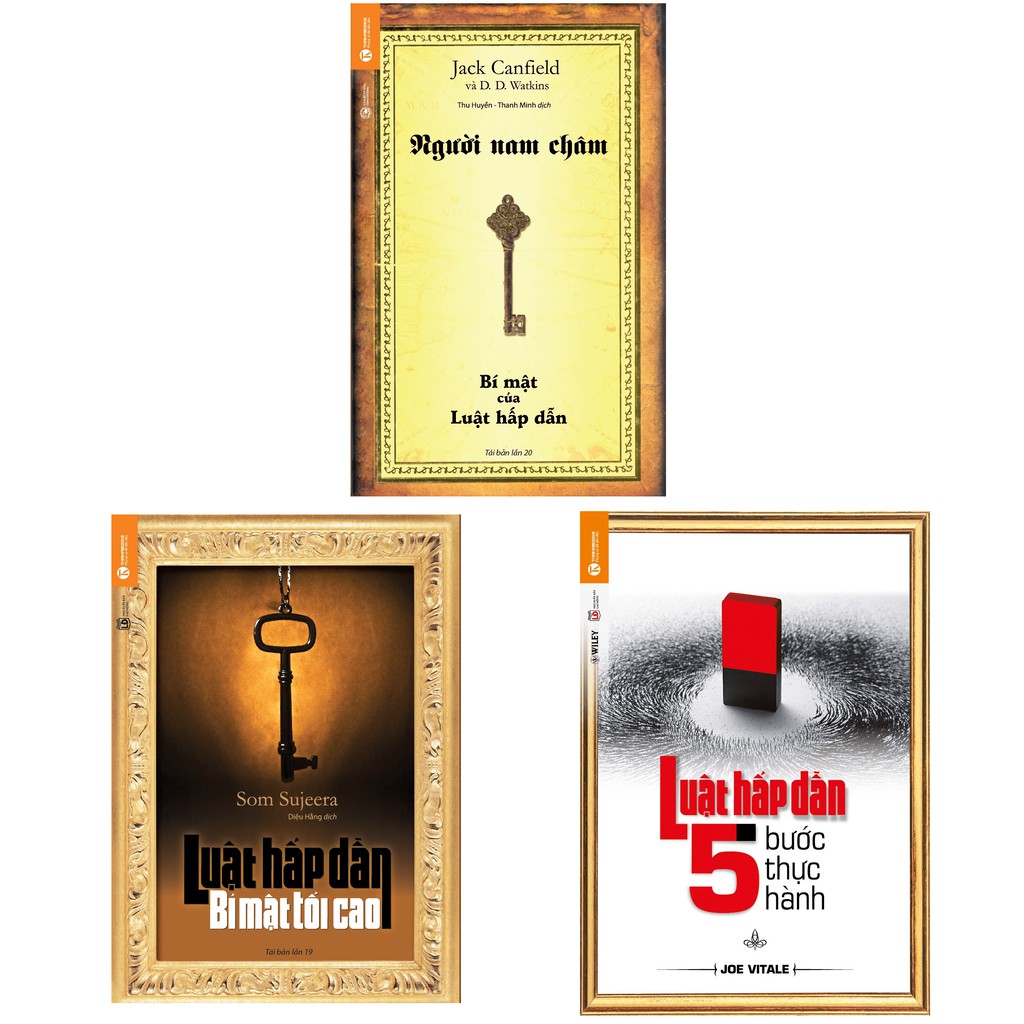 GIỚI THIỆU SÁCH 1. Người Nam Châm Bạn là năng lượng Tinh khiết và đơn giản. Bạn được tạo ra từ những thứ giống như mặt trời, mặt trăng và những vì sao. Bạn là tập hợp của một luồng sinh khí có trí tuệ, biết đi, biết nói và tồn tại dưới dạng một cơ thể con người. Bạn được tạo nên từ những tế bào, những tế bào này lại được tạo ra từ các nguyên tử, và các nguyên tử này được tạo ra từ những hạt nhỏ hơn nguyên tử. Những hạt nhỏ hơn nguyên tử đó là gì? Xin thưa, đó chính là NĂNG LƯỢNG! Vạn vật đều là năng lượng. Năng lượng không được tạo ra, cũng không thể phá hủy. Tự nó đã mang tính nhân quả. Nó hiện diện như nhau ở mọi lúc, mọi nơi. Năng lượng chuyển động vĩnh hằng và không bao giờ ngừng nghỉ. Nó chỉ chuyển hóa từ dạng này sang dạng khác, luôn luôn như vậy. SUY NGHĨ SINH RA NĂNG LƯỢNG. Trong vũ trụ này không có gì là thừa cả. Mỗi người có mặt trên cõi đời này vì họ cần lấp đầy một khoảng trống nào đó, và tất cả các mảnh nhỏ đều phải vừa khít với chỗ của nó trong tấm xếp hình khổng lồ của vũ trụ. ———————– Tên Nhà Cung Cấp Thái Hà Tác giả Nhiều tác giả NXB NXB Công Thương Năm XB 2019 Số trang 194 Hình thức Bìa Mềm ———————————————————————- 2. Luật Hấp Dẫn Bí Mật Tối Cao Sự tiến hóa của loài người mới chỉ kéo dài hơn hai trăm nghìn năm trong khi hai loài chim và bò sát đã phát triển hơn một triệu năm. So với chúng, loài người chỉ là một giống loài non trẻ. Tuy nhiên, loài người đã tiến hóa rất nhanh và có những bước phát triển vượt trội bởi họ có khả năng nhận thức về bản thân cùng khả năng phát triển nhận thức và thúc đẩy những hiểu biết rõ ràng hơn về bản chất của sự vật và hiện tượng xung quanh. Họ luôn cố gắng tìm kiếm cho mình con đường hướng tới thành công và hướng tới sự giải thoát khỏi mọi nỗi đau. Luật hấp dẫn – Bí mật tối cao mang lại cho bạn sự giải thích rõ ràng về sự tác động của Luật Hấp dẫn dựa trên tư tưởng của tâm lý học hiện đại và sự thấu hiểu bên trong về tinh thần có thể đạt được qua những hiểu biết về lời răn của đạo Phật. Thông qua Luật Hấp dẫn, những kết quả nghiên cứu mang tính khoa học và bằng cách luyện tập nhận thức khoảnh khắc hiện tại bạn sẽ hiểu tư duy của mình tạo ra thực tại như thế nào và làm sao bạn có thể sử dụng sức mạnh của những hiểu biết này để làm cho cuộc sống của mình trở nên hạnh phúc và ý nghĩa hơn. Cụ thể hơn, cuốn sách sẽ nhìn nhận vai trò của cảm xúc trong việc định hình thực tế. Để đạt được tới thành công thì con người cần trải qua một quá trình sáng tạo hoàn chỉnh gồm ba bước: yêu cầu, tin tưởng và đón nhận – gửi thông điệp tới thế giới về những mong muốn của mình, tin tưởng chắc chắn rằng mình sẽ đạt được mơ ước đó và đón nhận kết quả tốt đẹp để có thể có được một cuộc sống tốt đẹp, ý nghĩa hơn và thoát khỏi mọi nỗi đau. ——————– Tên Nhà Cung Cấp Thái Hà Tác giả Som Sujeera NXB NXB Lao Động Năm XB 2018 Số trang 217 Hình thức Bìa Mềm ———————————————————————– 3. Luật Hấp Dẫn – 5 Bước Thực Hành Tôi chưa từng gặp một ai không muốn thành công. Hơn thế nữa, mọi người đều mong muốn khám phá ra những bí mật của thành công để thành công nhanh nhất. Rất nhiều người cứ loay hoay tìm cách. Tôi ngày xưa cũng vậy. May thay, sau khi đọc xong cuốn Người nam châm – bí mật của luật hấp dẫn, tôi đã đọc ngay cuốn Luật hấp dẫn – 5 bước thực hành và nói thật hai cuốn sách này đã làm thay đổi tôi hoàn toàn. Vậy nên trong lần tái bản này tôi không thể không viết vài dòng về cuốn sách. Nếu như tôi đã từng bị cuốn sách Người nam châm thu hút bởi khi vận dụng luật hấp dẫn ta có thể thu hút thành công, hạnh phúc tới với mình thì Luật hấp dẫn – 5 bước thực hànhđưa ra và phân tích sâu vào 5 bước phát triển bản thân và thực hiện việc hấp dẫn những gì chúng ta mong muốn trong cuộc sống. nói một cách khá, Luật hấp dẫn – 5 bước thực hành cụ thể hóa luật hấp dẫn vốn có sẵn trong vũ trụ. Tôi xin nhắc lại 5 bước cụ thể đó để bạn hình dung ra: – Bước 1 Tìm hiểu những vấn đề tiêu cực ngăn cản thành công trong cuộc sống của bạn – Bước 2: Dám ước mơ và tìm kiếm vận mệnh của chính mình – Bước 3: Khám phá bí mật bị lãng quên trong quá trình tìm kiếm sự giàu có, thành công trong cuộc sống – Bước 4: Hiện thực hóa mục tiêu – Bước 5: Bí mật cuối cùng trở thành người có thể khiến vũ trụ mang đến cho bạn những thứ bạn mơ ước ——————- Tên Nhà Cung Cấp Thái Hà Tác giả Joe Vitale NXB NXB Lao Động Năm XB 2018 Số trang 328 Hình thức Bìa Mềm