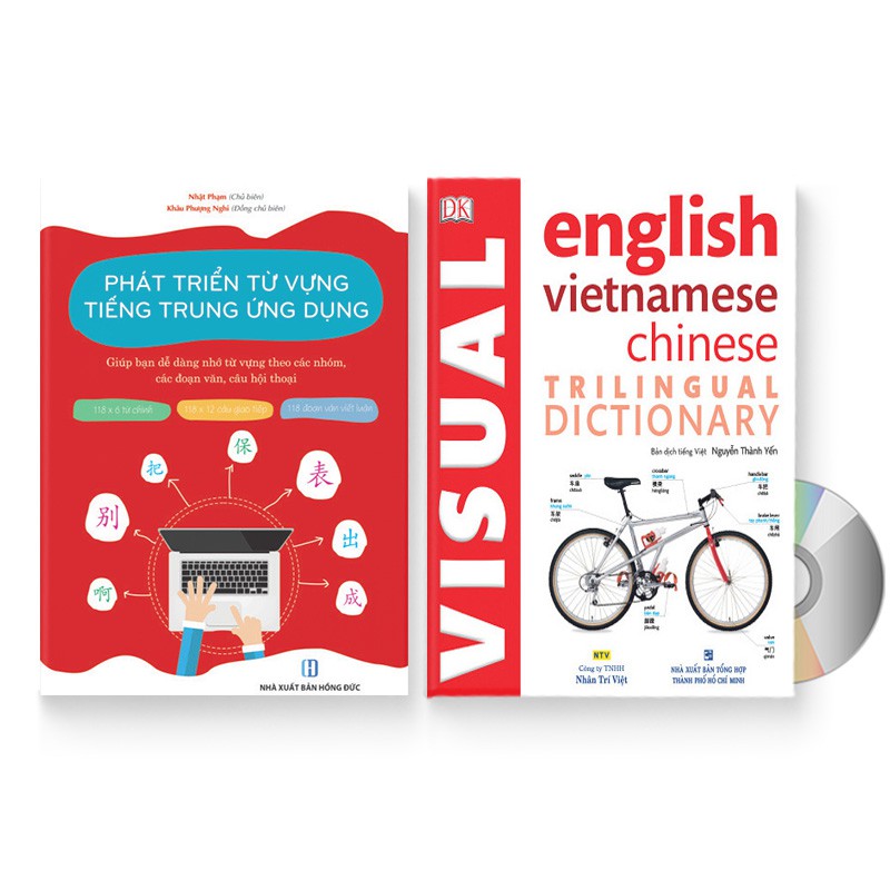 1. Combo: Phát triển từ vựng tiếng Trung Ứng dụng (in màu) + Từ điển hình ảnh Tam Ngữ Trung Anh Việt + DVD ebook