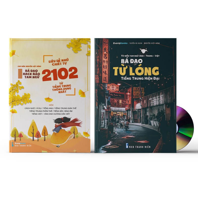 1. Combo: Siêu dễ nhớ chiết tự 2102 từ tiếng Trung thông dụng nhất + Bá đạo từ lóng tiếng Trung hiện đại + DVD quà ebook