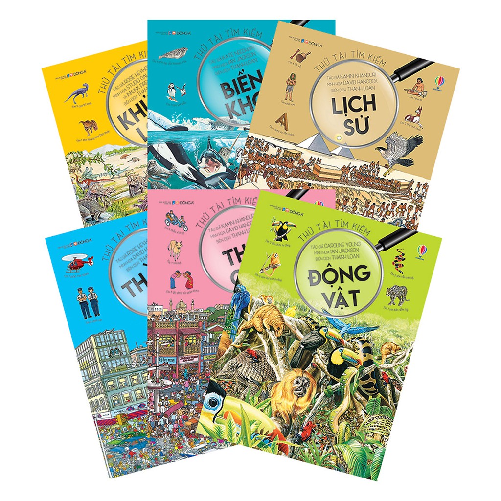 Combo Thử Tài Tìm Kiếm (Trọn Bộ 6 Cuốn) gồm: Thử Tài Tìm Kiếm – Biển Khơi Công ty phát hành: Công Ty Cổ Phần Văn Hóa Đông A Tác giả: Rosie Heywood Ngày xuất bản: 10-2017 Kích thước: 23.2 x 30.9 cm Nhà xuất bản: Nhà Xuất Bản Dân Trí Dịch Giả: Thanh Loan Số trang: 32 Từ bạch tuộc khổng lồ và cá mập trắng đến những thợ lặn biển sâu và kho báu dưới biển, trong các trang của cuốn sách tranh tuyệt đẹp này có nhiều thứ để em tìm kiếm. Thử tài tìm kiếm – Biển khơi chứa đựng vô vàn thông tin thú vị về thế giới trong lòng biển, từ rạn san hô kì diệu đến đáy đại dương sâu thẳm. Thử Tài Tìm Kiếm – Lịch Sử Công ty phát hành: Công Ty Cổ Phần Văn Hóa Đông A Tác giả: Rosie Heywood Ngày xuất bản: 10-2017 Kích thước: 23.2 x 30.9 cm Nhà xuất bản: Nhà Xuất Bản Dân Trí Dịch Giả: Thanh Loan Số trang: 32 Trong mỗi trang đôi của cuốn sách này có một bức tranh thể hiện sống động khung cảnh đặc trưng của một thời kì lịch sử, với nhiều nhân vật, động vật và đồ vật để em tìm kiếm. Ngoài hoạt động giải trí hấp dẫn, Thử tài tìm kiếm – Lịch sử còn chứa đựng nhiều kiến thực thú vị giúp độc giả nhỏ vừa chơi vừa học. Thử Tài Tìm Kiếm – Thành Phố Công ty phát hành: Công Ty Cổ Phần Văn Hóa Đông A Tác giả: Rosie Heywood Ngày xuất bản: 10-2017 Kích thước: 23.2 x 30.9 cm Nhà xuất bản: Nhà Xuất Bản Dân Trí Dịch Giả: Thanh Loan Số trang: 32 Chào mừng em đến với cuốn sách về thành phố! Thị trưởng Maurice sẽ là người hướng dẫn cho em trong chuyến thăm thú trọn một ngày này. Mỗi điểm dừng chân trong Thử tài tìm kiếm – Thành phố đều chứa đựng nhiều điều thú vị cho em tìm kiếm và vô số thông tin mới lạ về các thành phố cùng những người sống và làm việc ở đó cho em tha hồ tìm hiểu. Còn chờ gì nữa, bắt đầu ngay thôi! Thử Tài Tìm Kiếm – Thế Giới Công ty phát hành: Công Ty Cổ Phần Văn Hóa Đông A Tác giả: Rosie Heywood Ngày xuất bản: 10-2017 Kích thước: 23.2 x 30.9 cm Nhà xuất bản: Nhà Xuất Bản Dân Trí Dịch Giả: Thanh Loan Số trang: 32 Dì Marigold tặng em một món quà đặc biệt: tấm vé du lịch vòng quanh tế giới. Trong chuyến đi, sẽ có những thử thách yêu cầu em tìm kiếm nhiều thứ và phát hiện ra điểm đến tiếp theo. Không chỉ mang đến nhiều giờ giải trí thú vị, Thử tài tìm kiếm – Thế giới còn chứa đựng vô vàn thông tin hấp dẫn về các dân tôc và xứ sở trên thế giới. Thử Tài Tìm Kiếm – Động Vật Công ty phát hành: Công Ty Cổ Phần Văn Hóa Đông A Tác giả: Rosie Heywood Ngày xuất bản: 10-2017 Kích thước: 23.2 x 30.9 cm Nhà xuất bản: Nhà Xuất Bản Dân Trí Dịch Giả: Thanh Loan Số trang: 32 Từ cá sấu hung hãn đến ngựa vằn thân thiện, từ bọ xâu tai tí hon đến voi châu Phi to đùng, từ đầm lầy ẩm ướt đến vùng cực Bắc giá lạnh… em sẽ tha hồ đi khắp năm châu bốn bể và tìm kiếm hàng tăm loài động vật kì thú trong cuốn sách nhỏ này. Không chỉ đem đến những thử thách mới lạ, Thử tài tìm kiếm – Động vật còn chưa đựng nhiều thông tin thú vị về các loài động vật. Thử Tài Tìm Kiếm – Khủng Long Công ty phát hành: Công Ty Cổ Phần Văn Hóa Đông A Tác giả: Rosie Heywood Ngày xuất bản: 10-2017 Kích thước: 23.2 x 30.9 cm Nhà xuất bản: Nhà Xuất Bản Dân Trí Dịch Giả: Thanh Loan Số trang: 32 Từ Uyển long to lớn ăn thực vật đến những đàn Linh đạo long ăn thịt nguy hiểm, trong những trăng cảu cuốn sách tranh tuyệt đẹp này là vô số sinh vật cho em tìm kiếm. Ngoài những thách đố thú vị, Thử tài tìm kiếm – Khủng long còn cung cấp cho em nhiều thông tin hấp dẫn về các sinh vật đáng kinh ngạc từng sống trên Trái Đất nhiều triệu năm về trước. #thutai #thutaitimkiem #sachdonga #donga #khailuoc #khailuocnhungtutuonglon #khailuoctutuong #chinhtri #tongiao #tamlyhoc #kinhdoanh #triethoc #kinhtehoc