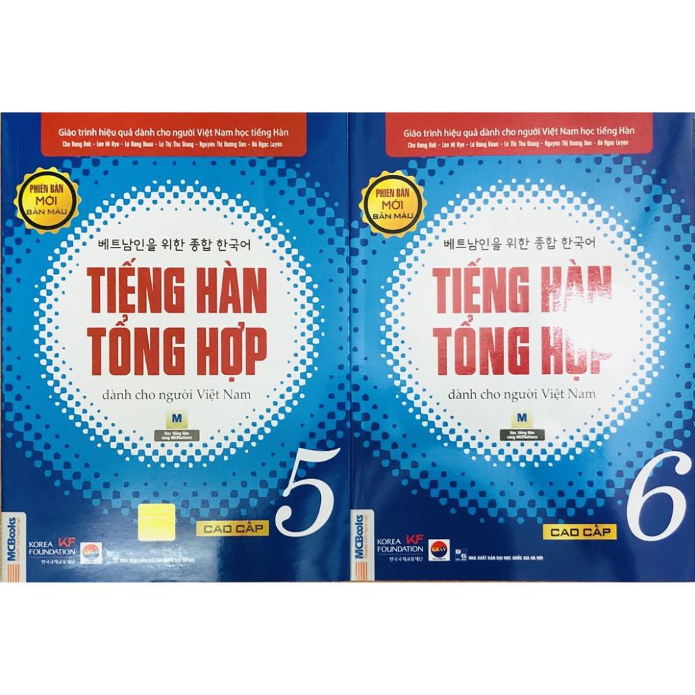 1. Giáo trình tiếng Hàn tổng hợp cao cấp 5 – bản màu (phiên bản mới) Công ty phát hành MCBOOKS Tác giả Nhiều tác giả Nhà xuất bản Đại Học Quốc Gia Hà Nội Năm xuất bản 2020 Số trang 300 Giới thiệu sách Tiếng hàn cao cấp 5 (bản mới) cũng giống như những cuốn giáo trình trong bộ, đều có hai bản màu và đen trắng phù hợp với nhu cầu người học. Giáo trình biên soạn kèm sách bài tập nhằm hỗ trợ người học trong quá trình ôn luyện kiến thức từ giáo trình, ghi nhớ ngữ pháp, từ vựng và biết ứng dụng những nội dung mình đã học. Đồng thời APP MCBooks là công cụ hữu ích giúp người học có thể học mọi lúc mọi nơi. Mở đầu mỗi bài có phần tóm tắt mục tiêu cho người học về kỹ năng, từ vựng, ngữ pháp, văn hóa…nhằm định hướng người học cần phải học như thế nào để đạt hiệu quả cao nhất. Từ vựng: Đưa ra các từ thông dụng trong cuộc sống hàng ngày tương ứng với chủ đề của bài Ngữ pháp: Mỗi bài học có từ 3 – 4 cấu trúc, giải thích bằng tiếng Việt chi tiết, cụ thể, kèm ví dụ thực tiễn giúp người học hiểu sâu ngữ pháp và luyện tập Luyện nói: Gồm các tình huống thông dụng trong cuộc sống, được chia làm 3 bước cơ bản: Làm quen – luyện tập – nâng cao Luyện nghe: Phần nghe kết hợp giữa nghe và chọn đáp án đúng, được sắp xếp theo trình tự từ dễ đến khó. Luyện đọc: Gồm các bài đọc từ cơ bản đến nâng cao giúp người học rèn luyện kỹ năng đọc và dịch. Luyện viết: Gồm các dạng bài : dịch từ tiếng Việt sang tiếng Hàn, điền từ vào chỗ trống và bài viết nâng cao Phần văn hóa: Giúp người học hiểu hơn về văn hóa truyền thống và hiện đại của Hàn Quốc Cuối mỗi bài sẽ có phần bổ sung từ vựng thường xuất hiện trong ví dụ và bài đọc Nội dung bài học trong quyển tiếng hàn cao cấp 5 có các biểu hiện thông dụng trong thực tiễn giúp người học dễ dàng ứng dụng trong cuộc sống hàng ngày. 2. Giáo trình tiếng Hàn tổng hợp cao cấp 6 – bản màu (phiên bản mới) Công ty phát hành MCBOOKS Tác giả Nhiều tác giả Nhà xuất bản Đại Học Quốc Gia Hà Nội Năm xuất bản 2020 Số trang 320 Giới thiệu sách Giáo trình tiếng Hàn cao cấp 6 (bản mới) gồm 15 bài tương ứng với 15 chủ đề thông dụng được sắp xếp một cách có hệ thống và liên quan đến nhau. Cấu trúc mỗi bài được chia thành các phần rõ ràng: Từ vựng, cấu trúc ngữ pháp kèm ví dụ chi tiết, luyện nói, luyện nghe, luyện đọc, luyện viết, văn hóa và cuối bài có kèm từ mới xuất hiện trong bài đọc: Mở đầu mỗi bài có phần tóm tắt mục tiêu cho người học về kỹ năng, từ vựng, ngữ pháp, văn hóa…nhằm định hướng người học cần phải học như thế nào để đạt hiệu quả cao nhất. Từ vựng: Đưa ra các từ thông dụng trong cuộc sống hàng ngày tương ứng với chủ đề của bài Ngữ pháp: Mỗi bài học có từ 3 – 4 cấu trúc, giải thích bằng tiếng Việt chi tiết, cụ thể, kèm ví dụ thực tiễn giúp người học hiểu sâu ngữ pháp và luyện tập Luyện nói: Gồm các tình huống thông dụng trong cuộc sống, được chia làm 3 bước cơ bản: Làm quen – luyện tập – nâng cao Luyện nghe: Phần nghe kết hợp giữa nghe và chọn đáp án đúng, được sắp xếp theo trình tự từ dễ đến kh