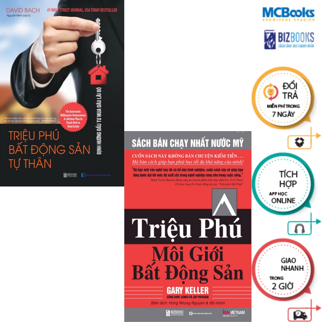 Combo 2 cuốn Triệu Phú Môi Giới Bất Động Sản + Triệu Phú Bất Động Sản Tự Thân Bộ sách về Bất động sản gồm 2 cuốn: – Triệu Phú Môi Giới Bất Động Sản – Triệu Phú Bất Động Sản Tự Thân: Định Hướng Đầu Tư Mua Đâu Lãi Đó: Giới thiệu sách: 1. Triệu Phú Môi Giới Bất Động Sản “Sách Đỏ: của chuyên gia bất động sản khắp nơi trên thế giới Trong cuốn sách mang tính đột phá này, bạn sẽ học được: Bản đồ dẫn đến thành công cho từng chuyên gia môi giới bất động sản để đạt Một triệu USD đầu tiên và sống với phiên bản xuất sắc nhất của mình với những bước tiến lớn trên con đường chinh phục đỉnh cao. Đặc biệt, nâng tầm tư duy về mục tiêu Thu nhập Thụ Động Một triệu Đô ngoài mục tiêu thu nhập ròng một triệu đô la Mỹ và làm việc ít thời gian hơn, nhưng lại thịnh vượng hơn. Các mô hình kinh tế hiệu quả cao nhất trong quản trị và vận hành các công ty môi giới bất động sản nhằm xây dựng những công việc kinh doanh đáng có, tự vận hành trôi chảy, để có một cuộc đời đáng sống và di sản để đời. Theo như lời tựa trong cuốn sách, những người làm bất động sản chuyên nghiệp trên khắp thế giới và từ mọi tổ chức khác nhau đều áp dụng những mô hình và kiến thức trong sách. Cho tới nay, với hơn 600.000 cuốn đã bán mà rất nhiều độc giả yêu mến gọi bằng cái tên “Sách Đỏ”, các chuyên gia bất động sản ở khắp nơi trên thế giới đã cùng nói chung một ngôn ngữ: tìm nguồn khách mua bất động sản (leads), tìm bất động sản cần chào bán (listings) và đòn bẩy (leverage). Quan trọng hơn, họ trao đi các phương pháp họ thường sử dụng để điều hành công việc kinh doanh, tất cả đều được chia sẻ trong các mô hình và kiến thức. Vậy nên, dù cho các chữ cái và ký tự có thể thay đổi ở mỗi quốc gia, và các quy trình giao dịch bất động sản có thể rất khác nhau, nhưng các khái niệm cốt lõi của cuốn sách và nhân tố quan trọng đưa tới thành công cho công việc kinh doanh bất động sản thì không hề khác biệt. —– Công ty phát hành BizBooks Tác giả Gary Keller Ngày xuất bản 04-2020 Kích thước 17 x 24 cm Nhà xuất bản Nhà Xuất Bản Hồng Đức Loại bìa Bìa mềm Số trang 487 2. Triệu Phú Bất Động Sản Tự Thân: Định Hướng Đầu Tư Mua Đâu Lãi Đó Chuyện gì sẽ xảy ra nếu tôi nói rằng có một phương pháp cực kỳ đơn giản có thể giúp bạn trở nên giàu có nhờ việc làm chủ nhà đất? Chuyện gì sẽ xảy ra nếu tôi nói rằng phương pháp này nằm trong chính cuốn sách Triệu phú bất động sản tự thân – và bạn hoàn toàn có thể học cách trở thành triệu phú? Bạn hứng thú chứ? Bạn sẵn lòng dành thời gian với tôi không? Bạn có thật sự muốn trở thành triệu phú bất động sản không? Triệu Phú Bất Động Sản Tự Thân: Định Hướng Đầu Tư Mua Đâu Lãi Đó Nếu bạn đang thuê nhà và muốn sở hữu một ngôi nhà, hãy đứng dậy và biến mong muốn thành hiện thực. Nếu bạn đang sở hữu một ngôi nhà và muốn mua một ngôi nhà lớn hơn, hãy đứng dậy và biến mong muốn thành hiện thực. Nếu bạn muốn sở hữu bất động sản cho thuê, hãy thực hiện điều đó. Và nếu bạn muốn giúp đỡ những người khác – hãy thực hiện điều đó! Cuộc sống vốn ngắn ngủi. Hãy sống một cách trọn vẹn nhất: Một cuộc sống giàu có và sung túc. Bạn đang cầm trên tay cuốn sách đơn giản, dễ đọc, dễ hiểu và có thể khiến cả cuộc đời bạn thay đổi. Triệu phú bất động sản tự thân không phải là một cuốn sách viết dạy bạn phương pháp giàu nhanh. Nó dựa trên các bằng chứng, khái niệm khoa học cũng như đưa ra cách thức tiếp cận thực tế trong lĩnh vực bất động sản – phương pháp đã giúp những người đủ quyết tâm đạt được thành công thực sự. Nhiệm vụ của tác giả khi viết cuốn sách này là truyền cảm hứng cho những ai đang thuê nhà có thể dũng cảm bước ra ngoài và mua một căn nhà của riêng mình. Tại sao ư? Vì với tư cách là chuyên viên tư vấn tài chính, cố vấn tài chính cá nhân và tác giả của các cuốn sách tài chính, tôi biết không gì có thể thay đổi tương lai tài chính của bạn nhanh hơn việc sở hữu một căn nhà của riêng mình. Làm chủ một căn nhà chính là nền tảng dựng xây sự giàu có, đồng thời giúp bạn và người thân tự do về tài chính. Mặc dù trong thời gian gần đây, các tờ báo đầy ắp những tin tức tiêu cực về bất động sản. Nhưng trên thực tế, mua nhà vẫn là một khoản đầu tư dài hạn tuyệt vời. Đây là cuốn sách thứ tám trong bộ sách Làm giàu này được xuất bản lần đầu vào năm 2006. Ngay sau khi ra mắt, cuốn sách đã lọt vào danh sách sách bán chạy tại Mỹ và Canada, đứng đầu trong danh sách các cuốn “ăn khách” theo New York Times, Wall Street Journal, USA Today và BusinessWeek bình chọn. “Triệu phú bất động sản tự thân” là cuốn sách hay và rất thực tế, mang lại nhiều lời khuyên cho độc giả đặc