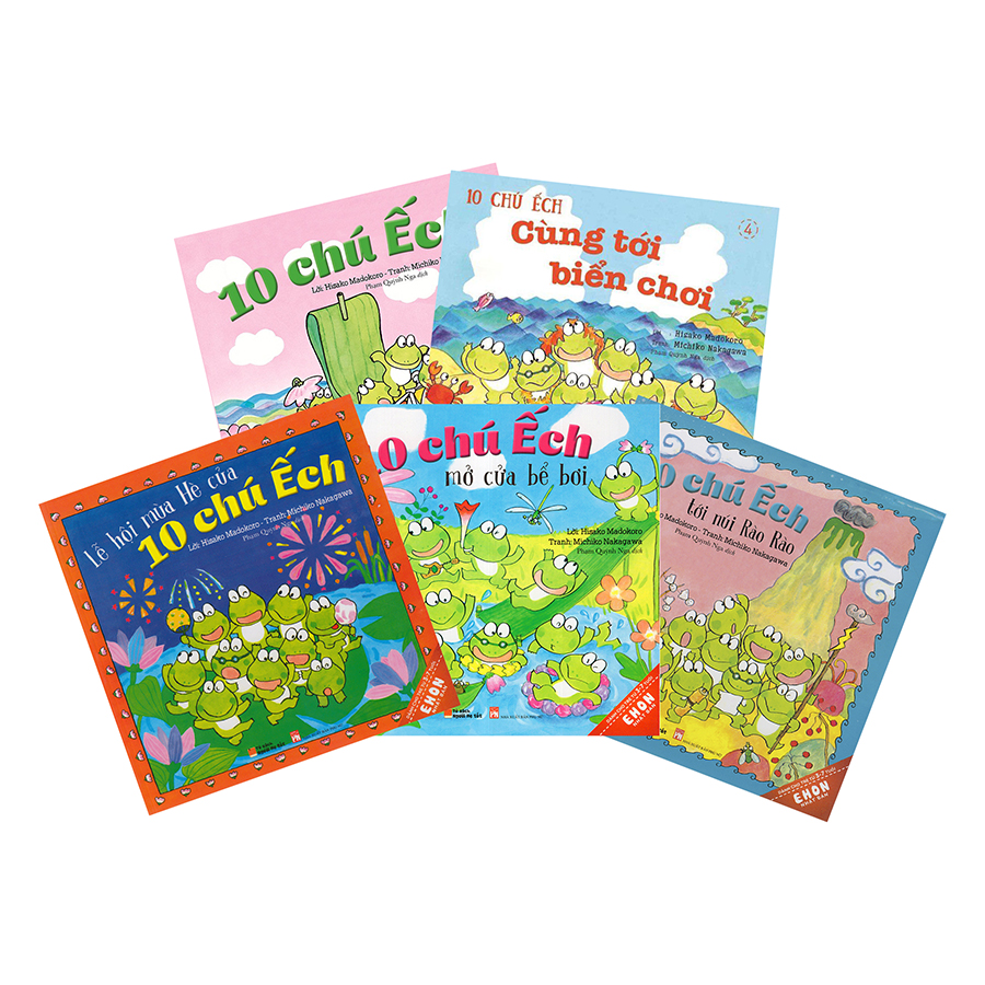 Combo Truyện Ehon Nhật Bản – 10 Chú Ếch (Bộ 1) 10 chú ếch là seri ehon nổi tiếng tại Nhật Bản, được hàng triệu trẻ em yêu thích bởi những chú ếch vô cùng dễ thương và vui nhộn. Câu chuyện xoay quanh cuộc sống của 10 chú ếch ở đầm quả bầu cùng các loài động vật khác. 10 chú ếch với 10 tính cách khác nhau nhưng vẫn luôn luôn vui vẻ, hòa đồng, thích giúp đỡ người khác. Mỗi câu chuyện là một chuyến phiêu lưu kì thú của 10 chú ếch, theo dõi những câu chuyện này, các bé sẽ học được những bài học ý nghĩa như sự sẻ chia, tinh thần đoàn kết, sự quyết tâm, lòng dũng cảm và tinh thần ham học hỏi… Truyện Ehon Nhật Bản luôn biết lồng ghép những bài học, những giá trị nhân văn vào trong các câu chuyện cho trẻ. Vì thế đọc Ehon cho trẻ được xem là một cách giáo dục trẻ hiệu quả nhất ở Nhật Bản. Và seri 10 chú ếch cũng là những câu chuyện như thế.