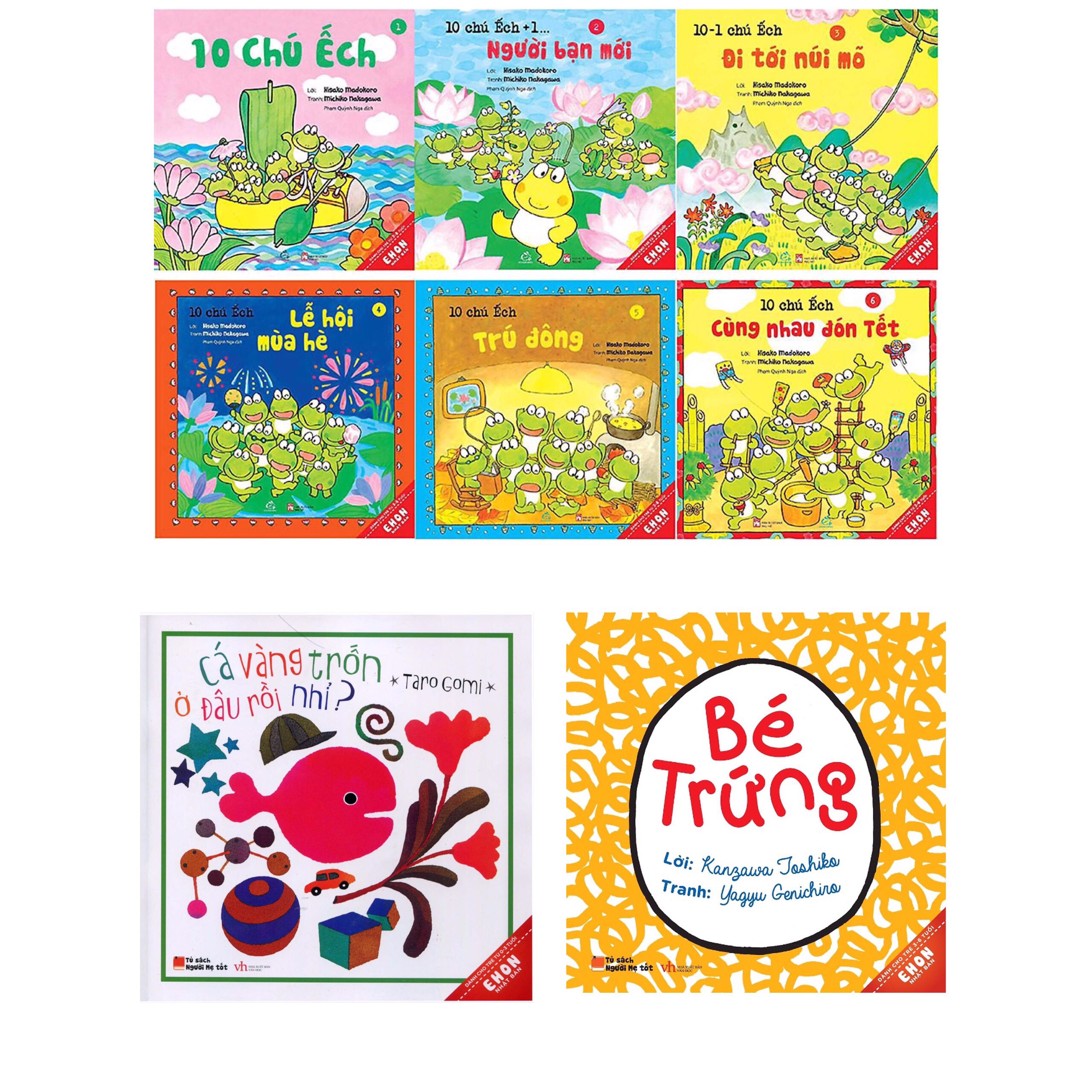 Sách Combo Truyện Tranh Ehon Nhật Bản: 10 Chú Ếch (Tập 1 – Tập 6) + Ehon Nhật Bản – Cá Vàng Trốn Ở Đâu Rồi Nhỉ? + Ehon Nhật Bản – Bé Trứng , Công ty phát hành Quảng Văn SKU 2106071262526 Nhà xuất bản Nhà Xuất Bản Phụ Nữ Việt Nam.
