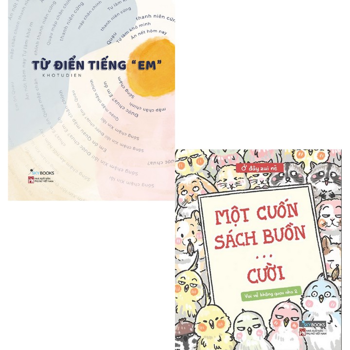Combo Từ Điển Tiếng “Em” + Vui Vẻ Không Quạu Nha 2 (2 Cuốn) 1. Từ Điển Tiếng “Em” Cuốn sách Từ Điển Tiếng “Em” giống như một chiếc hộp Pandora thú vị và hấp dẫn người đọc, vì bạn không thể đoán trước được tác giả sẽ “định nghĩa” câu nói đó theo nghĩa nào, cho ta thêm thích thú với những ngôn từ đáng yêu sử dụng mỗi ngày. Vậy nên, ngay bây giờ, bạn đã sẵn sàng để mở ra những điều thú vị trong cuốn sách Từ Điển Tiếng “Em” chưa!!! 2. Vui Vẻ Không Quạu Nha 2 – Một Cuốn Sách Buồn… Cười Nhỏ nhắn, nhưng dí dỏm một cách đầy thông minh, tác giả Ở Đây Zui Nè sẽ biến đủ thứ rắc rối thường ngày vẫn làm bạn đau đầu như chuyện “sừng”, chuyện sắm đồ online, chuyện bạn bè, chuyện lương lậu, gia đình… thành những chuyện dễ thở và bớt bực bội hơn rất nhiều. “Một cuốn sách buồn… cười” hi vọng siêu phẩm độc đáo này sẽ giúp bạn “đắm mình” trong bể muối để mặn mòi từ da dẻ, thư giãn và điều chỉnh tâm trạng theo cách nghịch ngợm mà đơn giản nhưng hiệu nghiệm nhất! Vì cuộc đời vốn không dễ dàng, sao chúng mình không sống nó theo một cách khác? Hạnh phúc hơn, theo một cách buồn… cười nhỉ? #newshop hân hạnh giới thiệu đến bạn đọc! ————————— Công ty phát hành: Skybooks Tác Giả: Ở Đây Zui Nè Tác Giả: Khotudien Kích Thước: 12×10 cm Nhà Xuất bản: Phụ Nữ Việt Nam Năm Xuất Bản: 2021 Năm Xuất bản: 2020 Số Trang: 280 Số Trang: 280 Bìa: Mềm