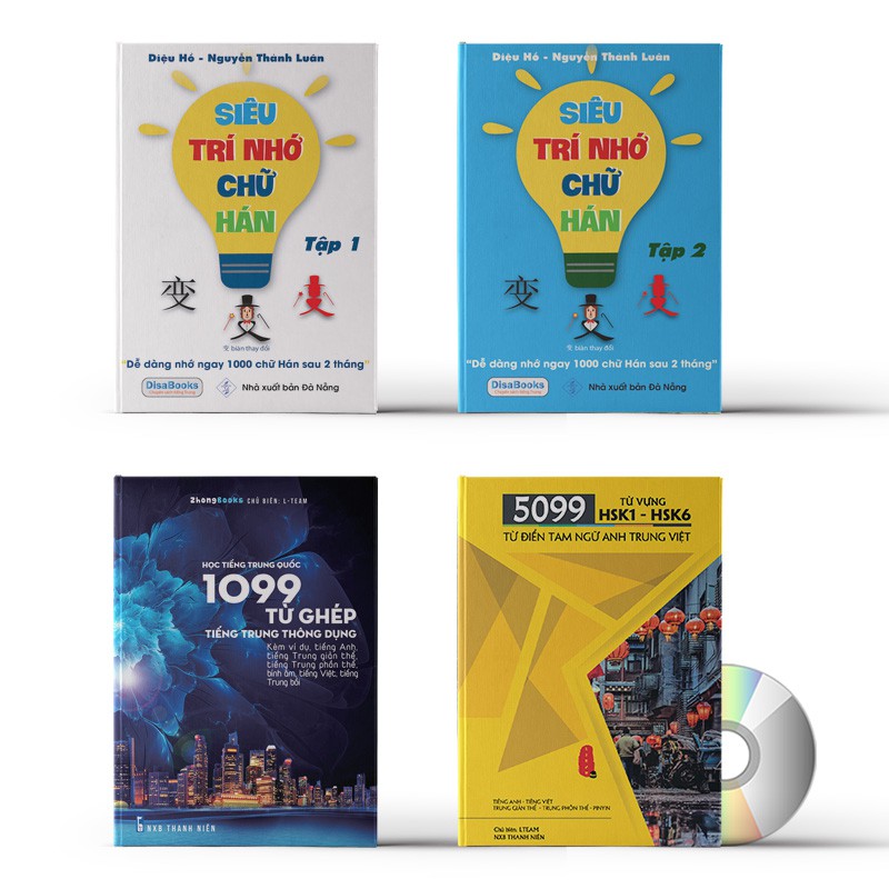1. Combo: Tự Học Tiếng Trung Từ Con Số 0 Tập 1 + 02 + 5099 từ vựng HSK1 – HSK6 + 1099 Từ Ghép Tiếng Trung + DVD nghe ebook