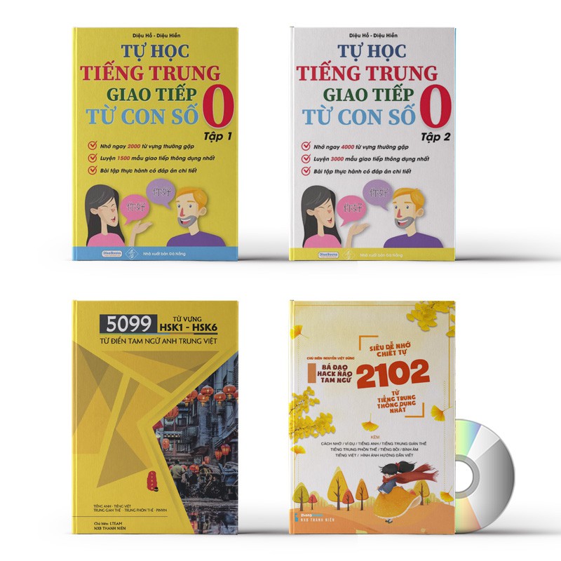 1. Combo: Tự Học Tiếng Trung Từ Con Số 0 Tập 1 + 02 + 5099 từ vựng HSK1 – HSK6 + Siêu dễ nhớ chiết tự 2102 từ + DVD ebook