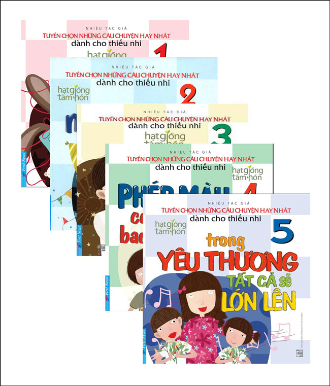Combo Tuyển Chọn Những Câu Chuyện Hay Nhất Dành Cho Thiếu Nhi Bộ sách tập hợp những câu chuyện được chọn lọc từ các ấn phẩm của tủ sách Hạt giống tâm hồn gần 20 năm qua; bên cạnh đó là những sáng tác mới nhất của rất nhiều cây bút đang dành tâm huyết cho thiếu nhi hiện nay như: Nguyễn Ngọc Hoài Nam, Nguyễn Thị Thanh Bình, Võ Thu Hương, Trần Tùng Chinh, Nguyễn Thị Kim Hòa, Trần Huyền Trang, Trương Huỳnh Như Trân… Những câu chuyện trong tuyển tập ngắn gọn, đầy nhân văn và cũng không kém phần tươi vui, hồn nhiên phản ánh cuộc sống và những tâm tư tình cảm của các em trong lứa tuổi 6-10. Tuyển chọn những câu chuyện hay nhất dành cho thiếu nhi được in 4 màu với những bức tranh minh họa đẹp, sinh động và gần gũi do hai họa sĩ trẻ Thùy Dung và Tiến Thông thực hiện. Bộ truyện xứng đáng là món quà ý nghĩa để các bậc phụ huynh dành tặng con em mình khi một năm học vừa kết thúc. Ngoài việc giải trí, bộ truyện góp phần giúp các em biết yêu thương, chia sẻ nhiều hơn và tạo cảm hứng sống tốt cho các em thông qua những câu chuyện nhỏ đầy tính nhân văn, cũng như qua những bức tranh sinh động; giúp các em dễ dàng tiếp nhận, có thể tự đọc hoặc do bố mẹ kể lại. Trọn bộ gồm 5 tập: Tập 1: Kho tàng trong túi giấy Tập 2: Người bạn thật sự Tập 3: Tâm hồn cao thượng Tập 4: Phép màu có giá bao nhiêu Tập 5: Trong yêu thương tất cả sẽ lớn lên