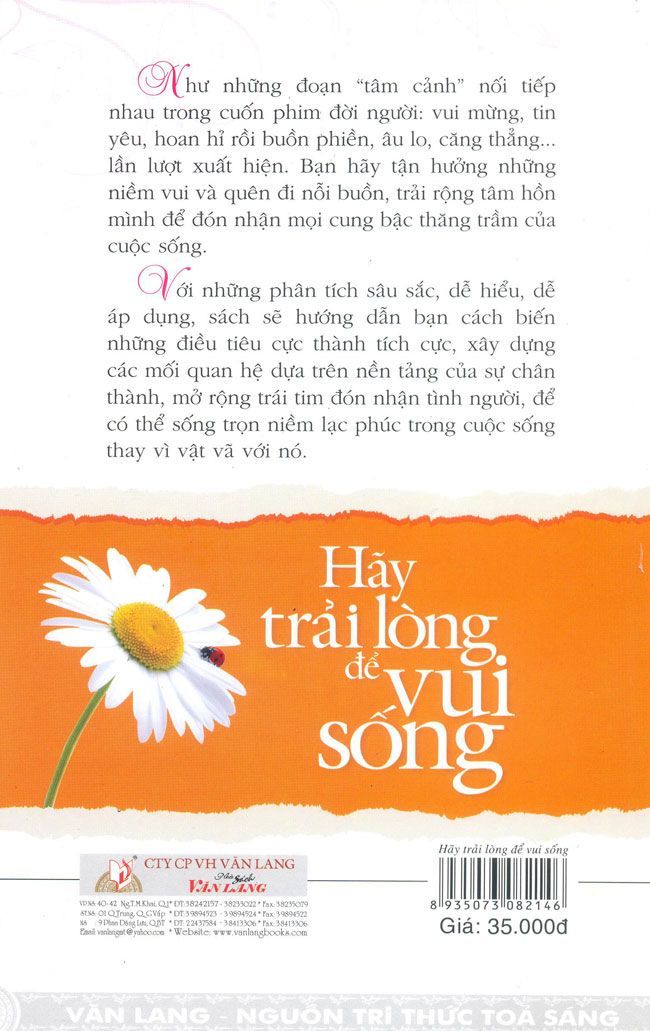 Hãy Trải Lòng Để Vui Sống Như những đoạn “tâm cảnh” cứ lặng lẽ nối tiếp nhau trong cuốn phim của một đời người: vui mừng, tin yêu, hoan hỉ rồi buồn phiền, âu lo, căng thẳng… lần lượt xuất hiện. Biết thế, hãy tận hưởng những niềm vui và quên đi nỗi buồn, trải rộng tâm hồn mình như sợi dây đàn sẵn sàng đón nhận mọi cung bậc thăng trầm để hòa cùng nhịp sống. Với những phân tích và lý luận sâu sắc, dễ hiểu, dễ áp dụng, sách sẽ hướng dẫn bạn cách biến những điều tiêu cực thành tích cực, xây dựng được các mối quan hệ dựa trên nền tảng của sự chân thành, mở rộng trái tim đón nhận muôn mặt tình người, tìm đến sự bình yên và tự do cho tâm hồn, để bạn có thể sống trọn niềm lạc phúc trong cuộc sống thay vì phải vật vã bởi nó.