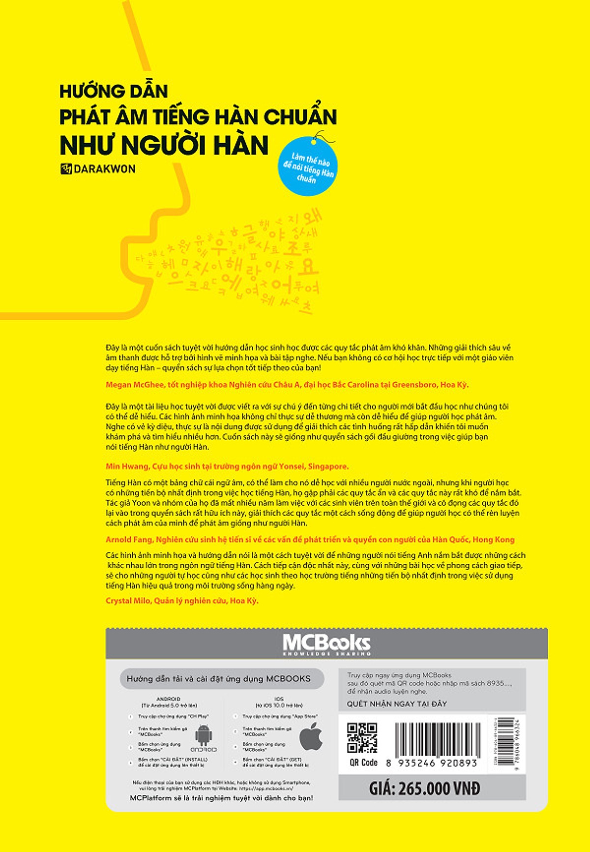 2. Thông tin sách Hướng Dẫn Phát Âm Chuẩn Như Người Hàn Quốc (Học kèm App MCBooks) (Tặng Thước Đo Chiều Cao Cho Bé)