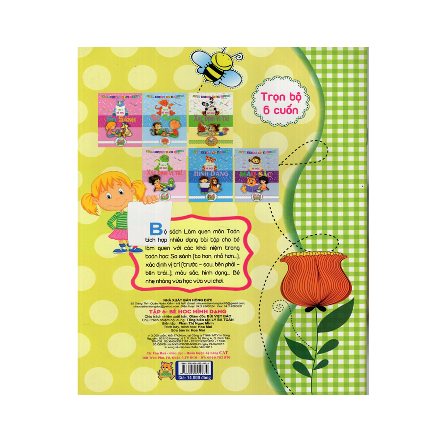 Làm Quen Môn Toán Bé Học Tập 5: Hình Dạng Bộ sách làm quen với môn Toán tích hợp nhiều bài tập cho bé làm quen với các khái niệm trong toán học: So sánh (To hơn – nhỏ hơn,..), xác định vị trí (trước – sau, bên trái – bên phải,..), hình dạng, màu sắc,… Bé nhẹ nhàng vừa học vừa vui chơi.