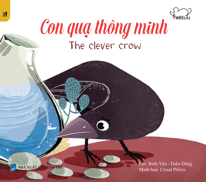 Con Quạ Thông Minh – The Clever Crow (Tái Bản) Trời nóng hạn, Quạ Đen và các bạn đang sắp chết khát. May mắn thay, Quạ tìm thấy một bình nước. Nhưng nước trong bình ít quá, cổ bình lại cao, Quạ Đen không thể thọc mỏ vào uống được. Đố bé, Quạ Đen đã dùng cách gì có nước uống đây? The intensely hot weather, the Black Crow and his friends were about to meet their fate. Luckily, when all hope seemed to lose, the Black Crow found a bottle with some water inside. But the problem was the bottle was too tall for his short beak to reach the precious water. What would the Crow do to be able to drink the water?