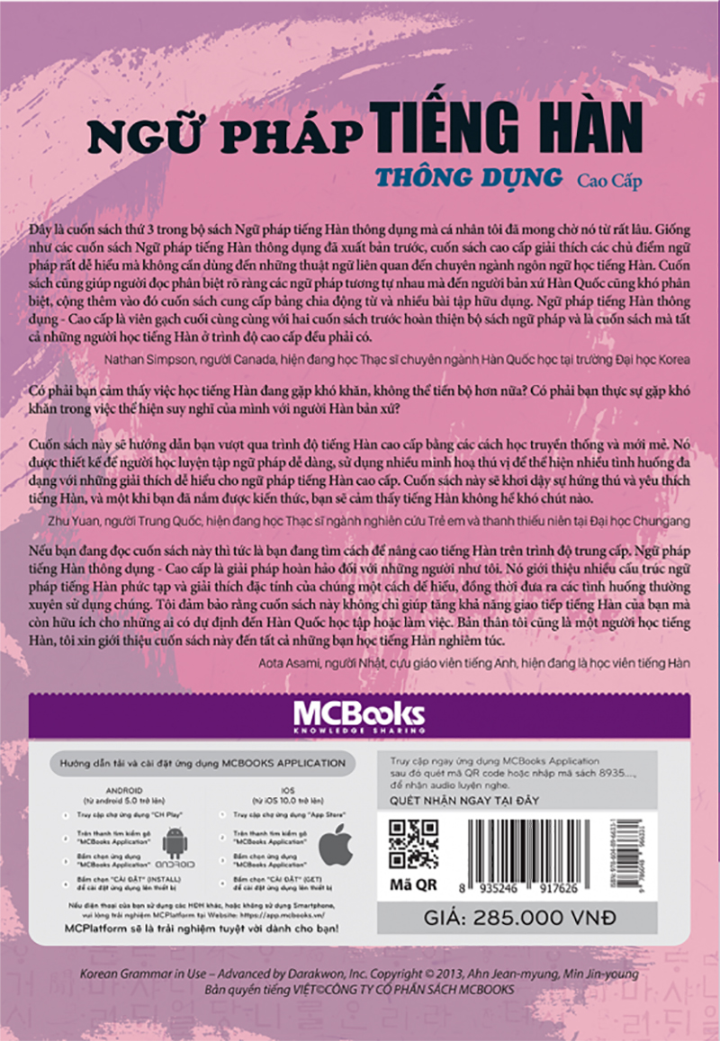 3. Mô tả sách Ngữ Pháp Tiếng Hàn Thông Dụng Cao Cấp (Tặng Trọn Bộ Tài Liệu Học Tiếng Hàn Online: Giáo Trình Tổng Hợp Và Luyện Thi Topik) (Học Kèm App: MCBooks Application)