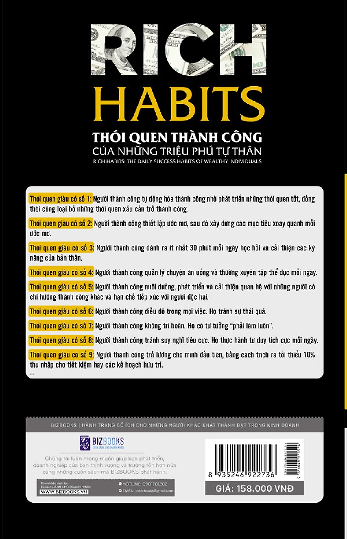 Sách Rich Habit – Thói Quen Thành Công Của Những Triệu Phú Tự Thân (tặng sổ tay mini dễ thương KZ) , Công ty phát hành BIZBOOKS Kích thước 13 x 20.5 cm Loại bìa Bìa mềm SKU 4687253918465.