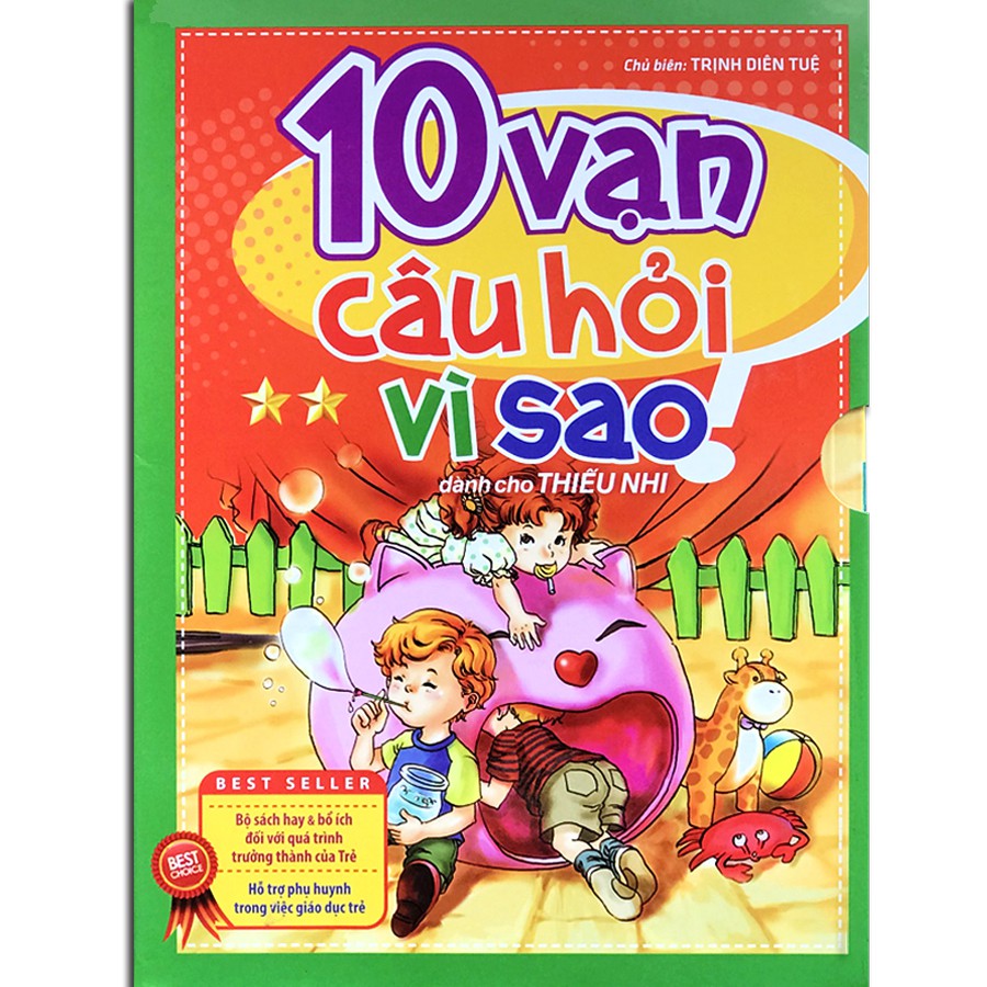 10 Vạn Câu Hỏi Vì Sao (Bộ 5q lẻ tùy chọn – phần 2) Bạn có thể mua cả bộ hoặc lẻ tùy chọn cho bé nhé: Vì sao bồ câu có thể đưa thư? Vì sao ong lại chết sau khi đốt người? Vì sao trên trái đất lại có ngày và đêm? Vì sao mặt trăng lúc thì giống lưỡi liềm, lúc lại giống chiếc đĩa tròn? Vì sao nước mắt lại có vị mặn? Vì sao khi nóng lại đổ mồ hôi? Vì sao ốc sên phải mang căn nhà nhỏ trên lưng? Vì sao nòng nọc không giống mẹ mình chút nào? Vì sao phải tự mặc quần áo? Vì sao không được kén ăn? Tất cả các câu trả lời sẽ có trong bộ 05 cuốn 10 vạn câu hỏi vì sao dành cho thiếu nhi, với các chủ đề khác nhau: 1. Chủ đề: Chim Yến, Chuồn Chuồn & Đom Đóm Vì sao chuồn chuồn lại thích chạm đi chạm lại trên mặt nước? Bướm là do sâu biến thành sao? Vì sao bồ câu có thể đưa thư? Vì sao ong lại chết sau khi đốt người? Vì sao bọ hung lại giả chết? 2. Chủ đề: Mặt Trời, Mặt Trăng & Gió Mưa Có phải các ngôi sao cũng giống như những chú mèo, ban ngày thì ngủ còn ban đêm thì làm việc? Vì sao trên trái đất lại có ngày và đêm? Vì sao mặt trăng lúc thì giống lưỡi liềm, lúc lại giống chiếc đĩa tròn? Khi trời mưa, mặt trời ở đâu? Có phải nó cũng trú mưa không? Những giọt sương đọng trên lá lúc sáng sớm từ đâu tới? 3. Chủ đề: Đôi mắt, mồ hôi và giấc mơ Giữa bạn trai và bạn gái, ai thông minh hơn? Vì sao nước mắt có vị mặn? Vì sao khi nóng lại đổ mồ hôi? Vì sao không được vừa ăn vừa xem tivi? Vì sao con người lại mơ? 4. Chủ đề: Vệ sinh, sức khỏe và thói quen tốt Vì sao phải tự mặc quần áo? Vì sao không được kén ăn? Vì sao các bạn nhỏ nên ngủ một mình? Đào nói dối cô giáo, nên làm thế nào đây? Vì sao không được xem tivi lâu? 5. Chủ đề: Gấu trúc, Voi và Kiến Vì sao ốc sên phải mang căn nhà nhỏ trên lưng? Vì sao nòng nọc không giống mẹ mình chút nào? Chiếc đuôi của sóc có tác dụng gì? Bên trong cái bướu trên lưng lạc đà có phải là nước không? Loài khủng long lớn nhất là loài nào? ~~~~~~****~~~~~~ Công ty phát hành Minh Long Tác giả Trịnh Diên Tuệ Ngày xuất bản 10-2013 Kích thước 17 x 23 cm Nhà xuất bản Nhà Xuất Bản Phụ Nữ Loại bìa Bìa mềm Số trang 64 trang/1 quyển x 5 quyển