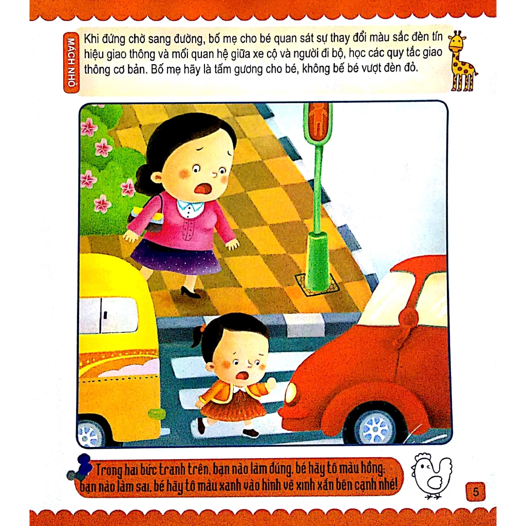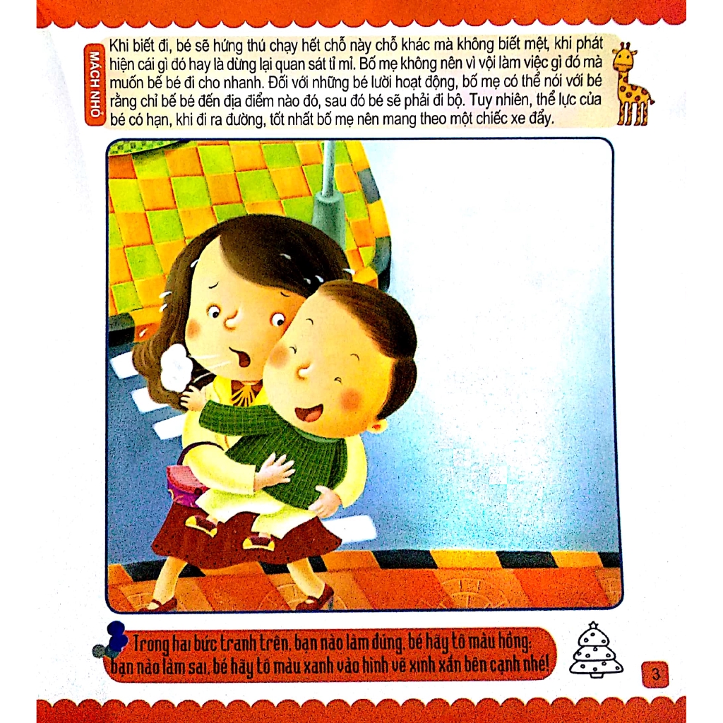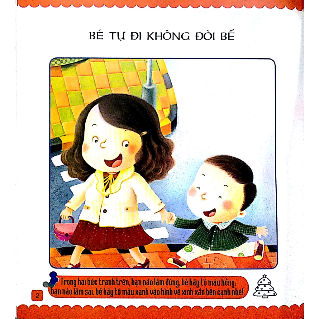 Công ty phát hành: Đinh Tị Nhà xuất bản: NXB Dân Trí Tác giả: Triệu Đông Mai Loại bìa: Bìa Mềm Số trang: 40 Năm xuất bản: 01-2011 Bé tự đi, không đòi bế Đèn đỏ dừng, đèn xanh đi Sang bên đường bằng cầu vượt Không nô đùa trên đường lớn Không thò đầu ngoài cửa xe Bé nhường ghế cho người già Luôn vui vẻ giúp người khác Không ngắt hoa, giẫm lên cỏ Không vẽ bậy lên tường nhà Không ném đồ vào con thú Đi dã ngoại, giữ vệ sinh Rất văn minh để thùng rác Chơi máy móc, có mẹ trông Lên thang máy, nắm tay vịn Không vòi vĩnh đòi mua đồ Ngồi trong xe đi siêu thị Ở nhà hàng, không la hét. Đó là những nội dung mà chúng tôi muốn gửi gắm tới các bậc cha mẹ và thầy cô giáo nhằm bồi dưỡng và giáo dục cho các bé những đức tính, phẩm chất tốt trong quá trình phát triển và hình thành nhân cách. Đây là cuốn cẩm nang không thể thiếu để các thầy cô giáo, các bậc cha mẹ bồi dưỡng cho con em mình những phẩm chất tốt nhất. Bộ sách dạy cho trẻ những tình huống cơ bản trong giao tiếp và ứng xử như: Ở nhà thì phải làm sao, Khi ra ngoài đường thì phải như thế nào, Còn khi các bé đến trường phải biết làm sao để luôn được phiếu bé ngoan vào mỗi cuối tuần. Sách được in nhiều màu trên chất liệu giấy ngoại nhập, nội dung hấp dẫn, đơn giản và là món quá tốt nhất dành cho cha mẹ để bồi dưỡng cho con em mình những phẩm chất và đức tính tốt nhất.